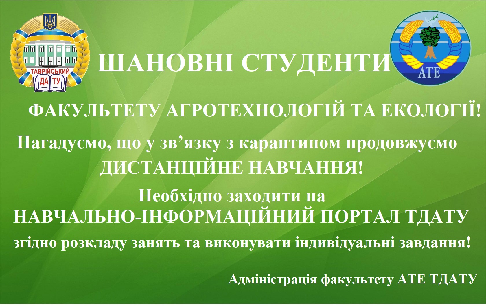 УВАГА! СТУДЕНТАМ ФАКУЛЬТЕТУ АГРОТЕХНОЛОГІЙ ТА ЕКОЛОГІЇ ТАВРІЙСЬКОГО ДЕРЖАВНОГО АГРОТЕХНОЛОГІЧНОГО УНІВЕРСИТЕТУ імені ДМИТРА МОТОРНОГО!!! 26.03.2020