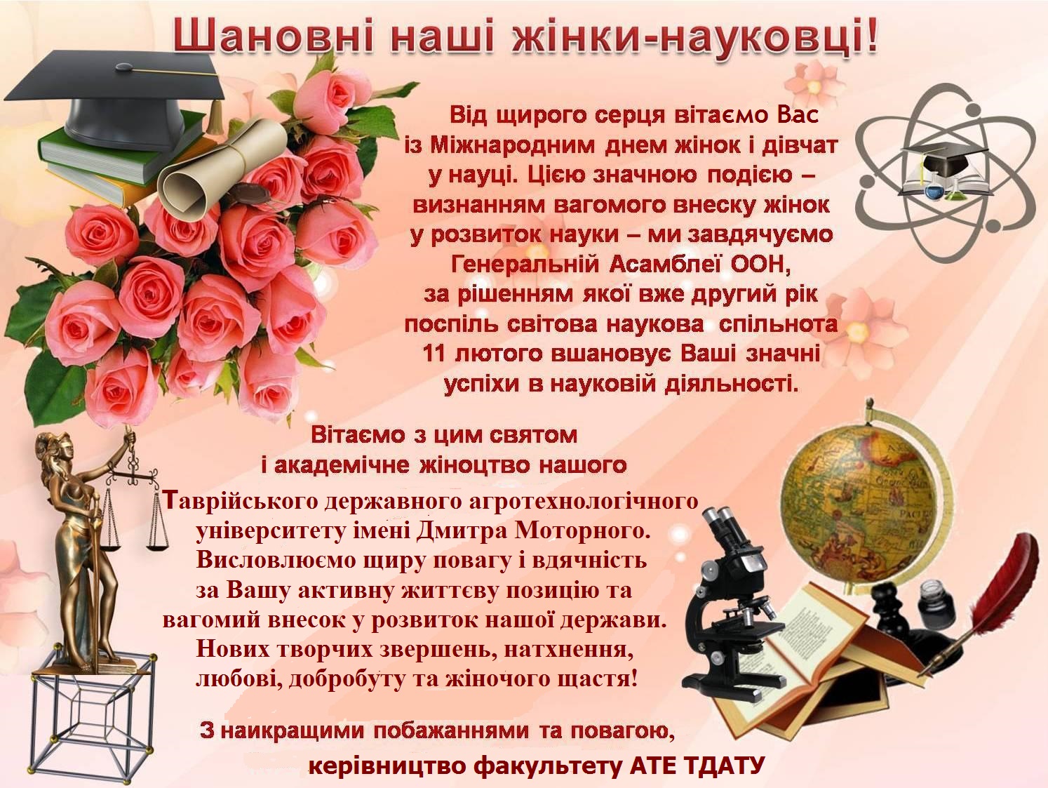 ВІТАЄМО З МІЖНАРОДНИМ ДНЕМ ЖІНОК І ДІВЧАТ У НАУЦІ!