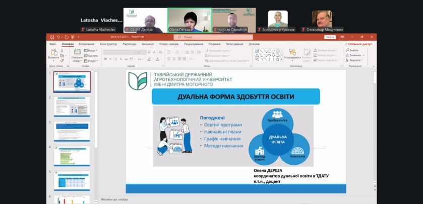 Координатор дуальної освіти від ТДАТУ, доцент Олена Дереза, представила детальний аналіз реалізації дуальної форми навчання в університеті, зокрема у розрізі спеціальностей механіко-технологічного факультету. Вона підкреслила зростання інтересу студентів до гнучких освітніх траєкторій та позитивний вплив практикоорієнтованого навчання на їх професійний розвиток.