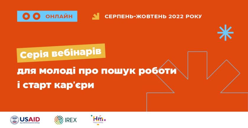 Серія вебінарів реалізується в межах проєкту «Твоя кар’єрна перемога», який впроваджується Happy Monday (ГО «Професіонали майбутнього») в межах програми «Мріємо та діємо».