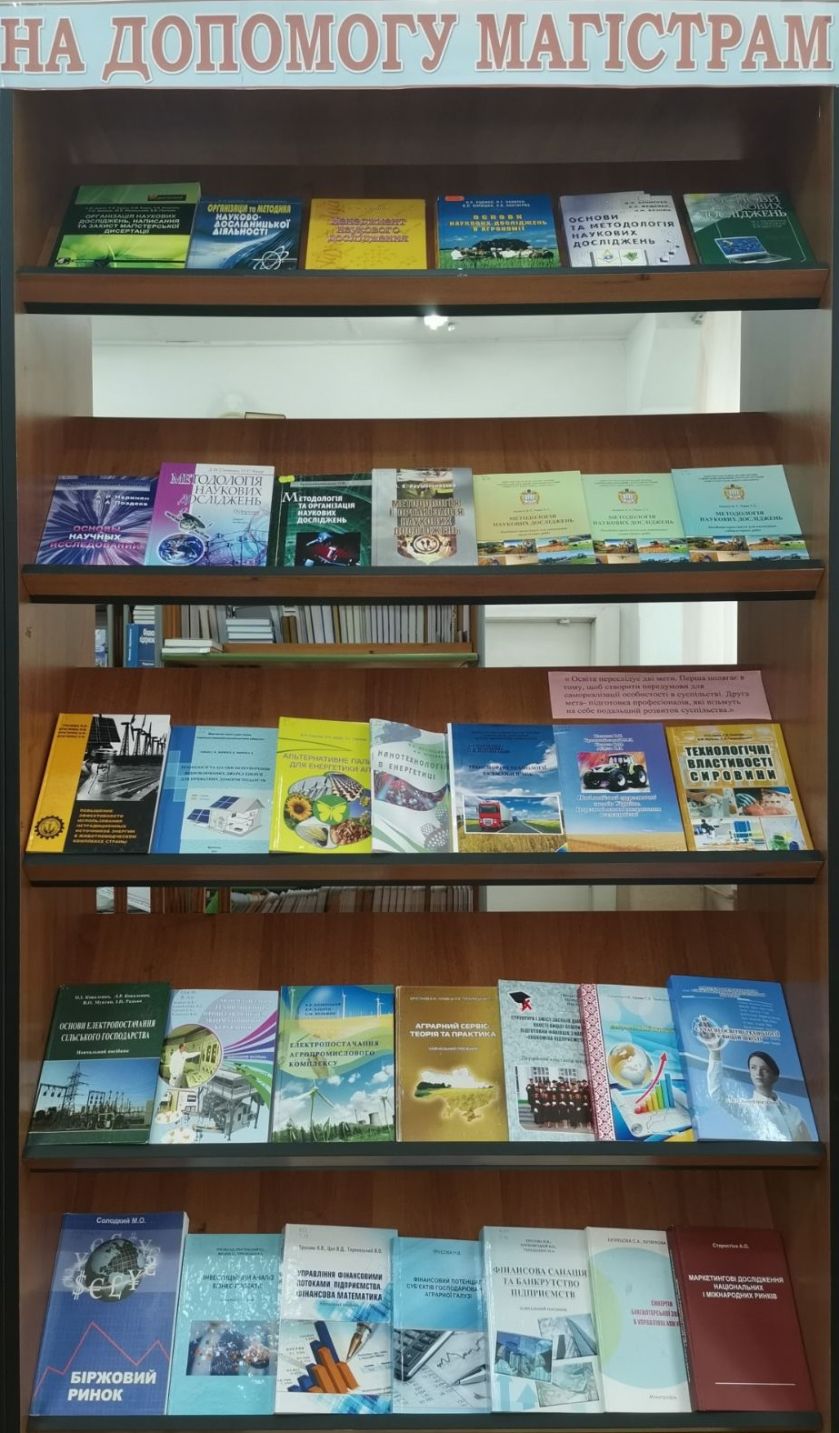 Наукова бібліотека підготувала тематичну книжкову виставку «На допомогу магістрам», яка експонується на абонементі навчально-наукової літератури. На виставці представлена література за спеціальностями факультетів.