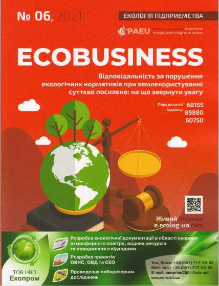 7. Виробничо-практичний щомісячний журнал в галузі екології «ECOBUSINESS. Екологія підприємства» №6 є лідером серед ділових видань України у сфері промислової екології і надійний помічник у роботі менеджера природоохоронної діяльності