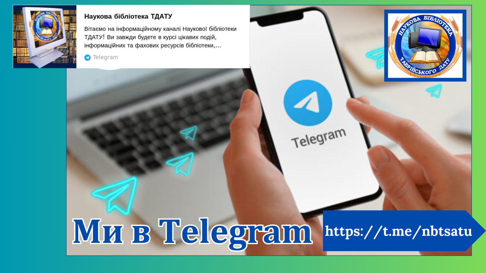 Відтепер бібліотека у смартфоні! Нагадуємо, наукова бібліотека ТДАТУ заснувала свій офіційний канал у Telegram.