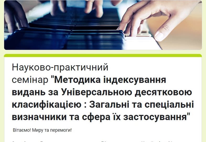 Семінар проводився у межах серії тематичних заходів із підвищення кваліфікації систематизаторів бібліотек. Він стати площадкою для обговорення актуальних питань індексації наукових видань.