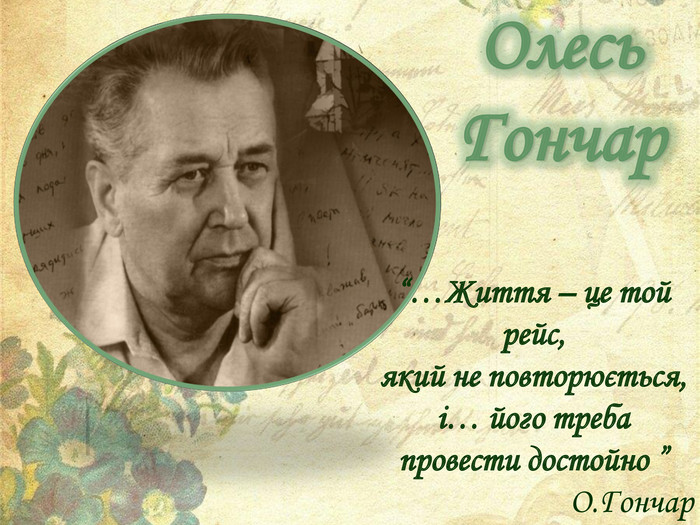 🔸 У долі письменника відбилася доля країни. Митець і його слово пройшли великі випробування. Кожен життєвий етап Олеся Гончара припав з вирішальним етапом у долі країни.