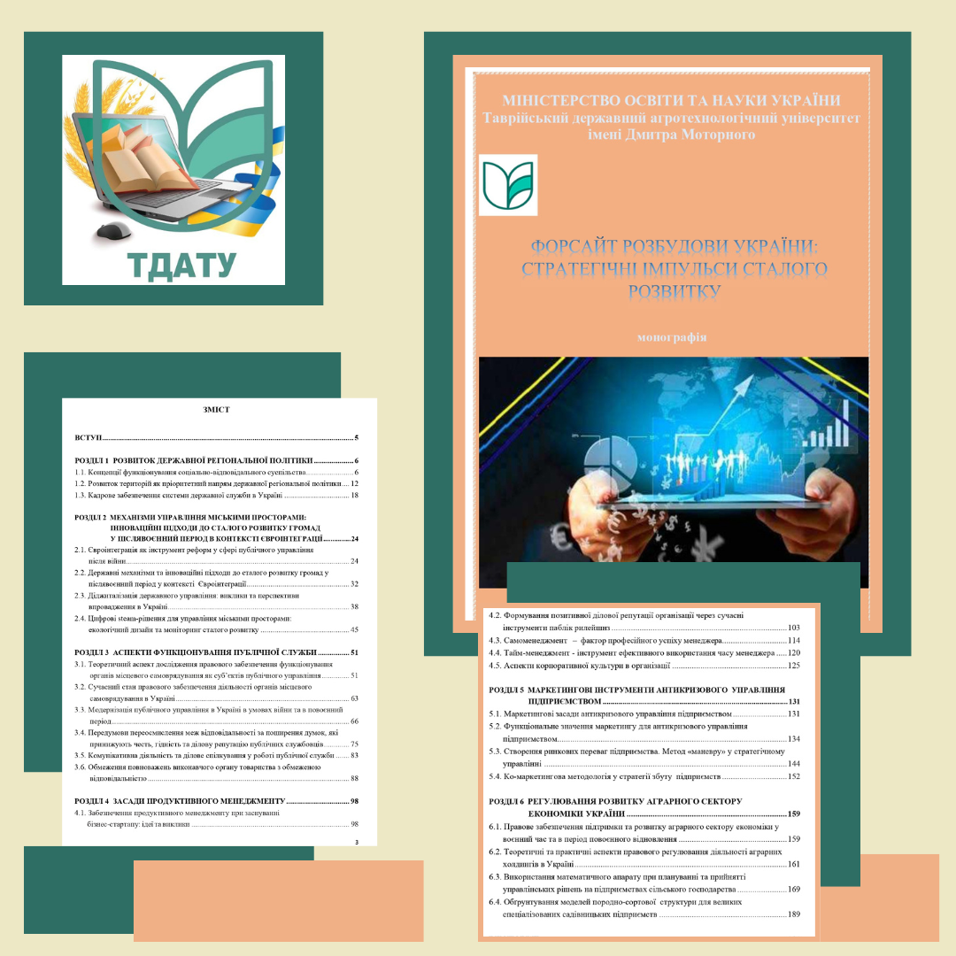 Співавторами наукової праці стали вчені кафедри менеджменту і публічного адміністрування ТДАТУ і університетів Запоріжжя, Дніпра, Умані і Львову.