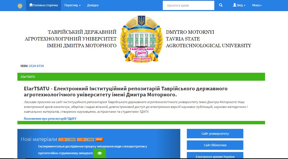 - через розміщення наукових доробків професорсько-викладацького складу, співробітників та студентів ТДАТУ у електронному архіві – інституційному репозитарії ElarTSATU.