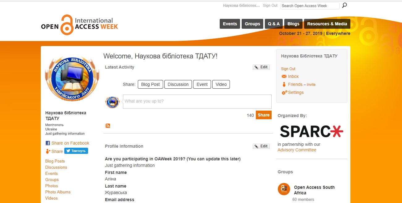 - сайті Open International Access Week (представлення електронних ресурсів)