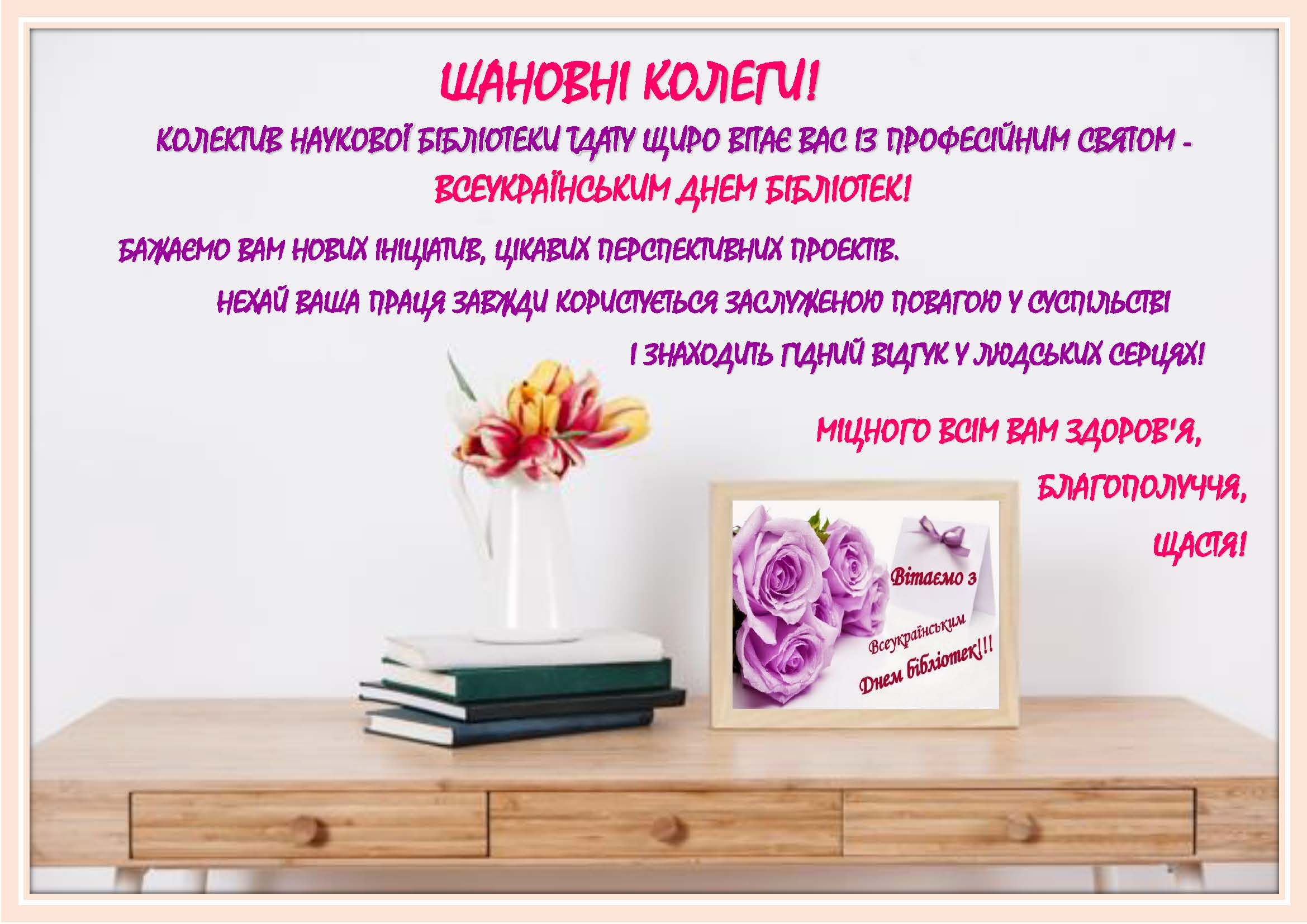 Святкування Всеукраїнського дня бібліотек збігається з відзначенням іменин Віри, Надії, Любові. Тож бажаємо всім освітянам, щоб їхні серця завжди були сповнені цими високими почуттями!