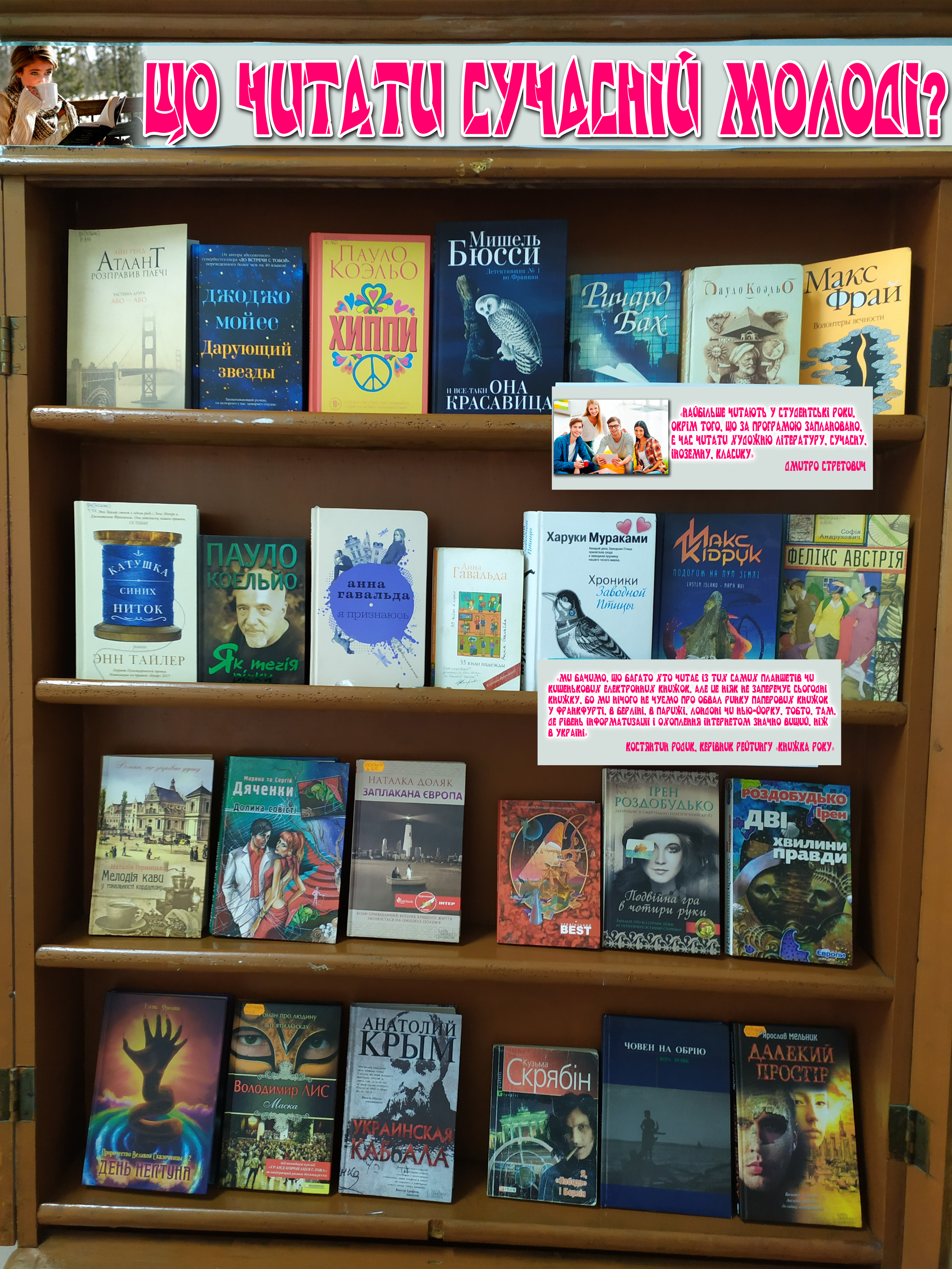 Запрошуємо всіх бажаючих до перегляду виставки, яка розміщена на першому поверсі бібліотеки. Усі ці книги є у фонді нашої бібліотеки.