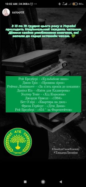 Наукова бібліотека разом із студентами ТДАТУ приєдналася до загальнонаціональної акції «Національний тиждень читання», яка проходить з 13-го до 19-те грудня у межах українського культурного простору.