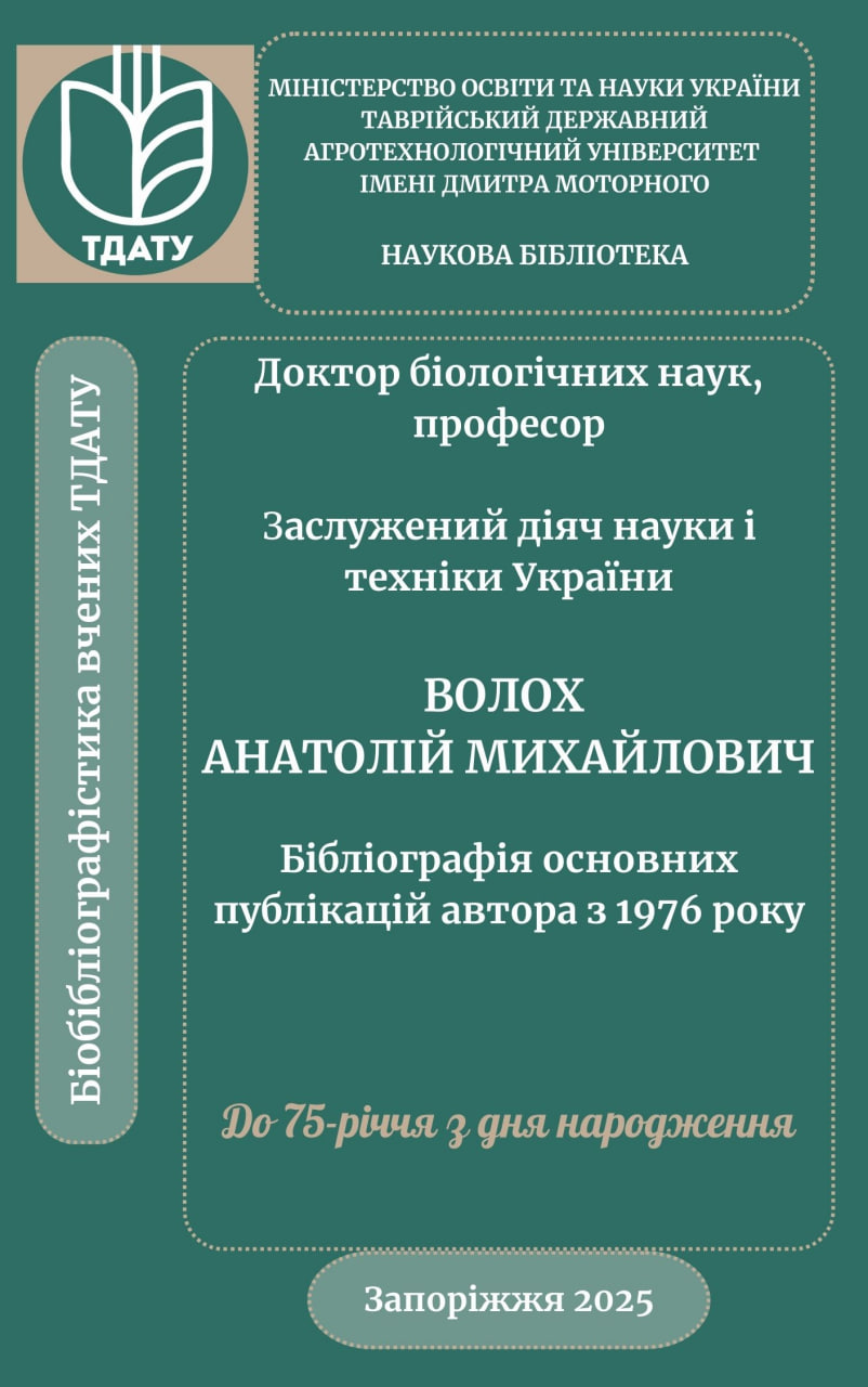 Наукова бібліотека з нагоди ювілею видатного вченого Анатолія Михайловича Волоха підготувала Бібліографічний покажчик публікацій (1976–2024 рр.), з яким можна ознайомитись в репозитарії ТДАТУ.