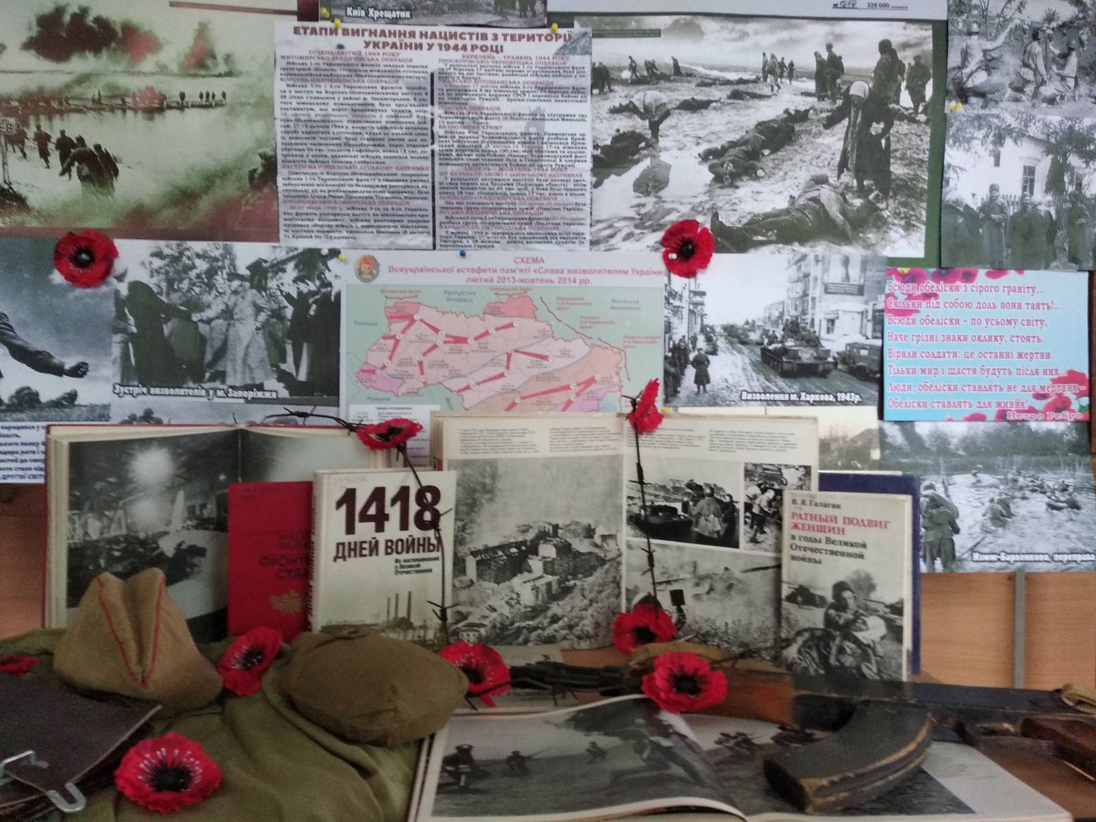 Майже не лишилось серед нас тих, хто осіннім бездоріжжям 1944 року звільняв нашу землю від окупантів. Стендова виставка-інсталяція – це вдячний привід, щоб віддати належну шану воїнам-визволителям України, що піднялись на бій з фашизмом, усім тим, хто здобував перемогу, працюючи на заводах і фабриках, у наукових установах, на ланах і фермах, хто боровся із ворогом у партизанських загонах і підпіллі, у Русі Опору за межами Батьківщини, хто не скорився і загинув у концентраційних таборах.