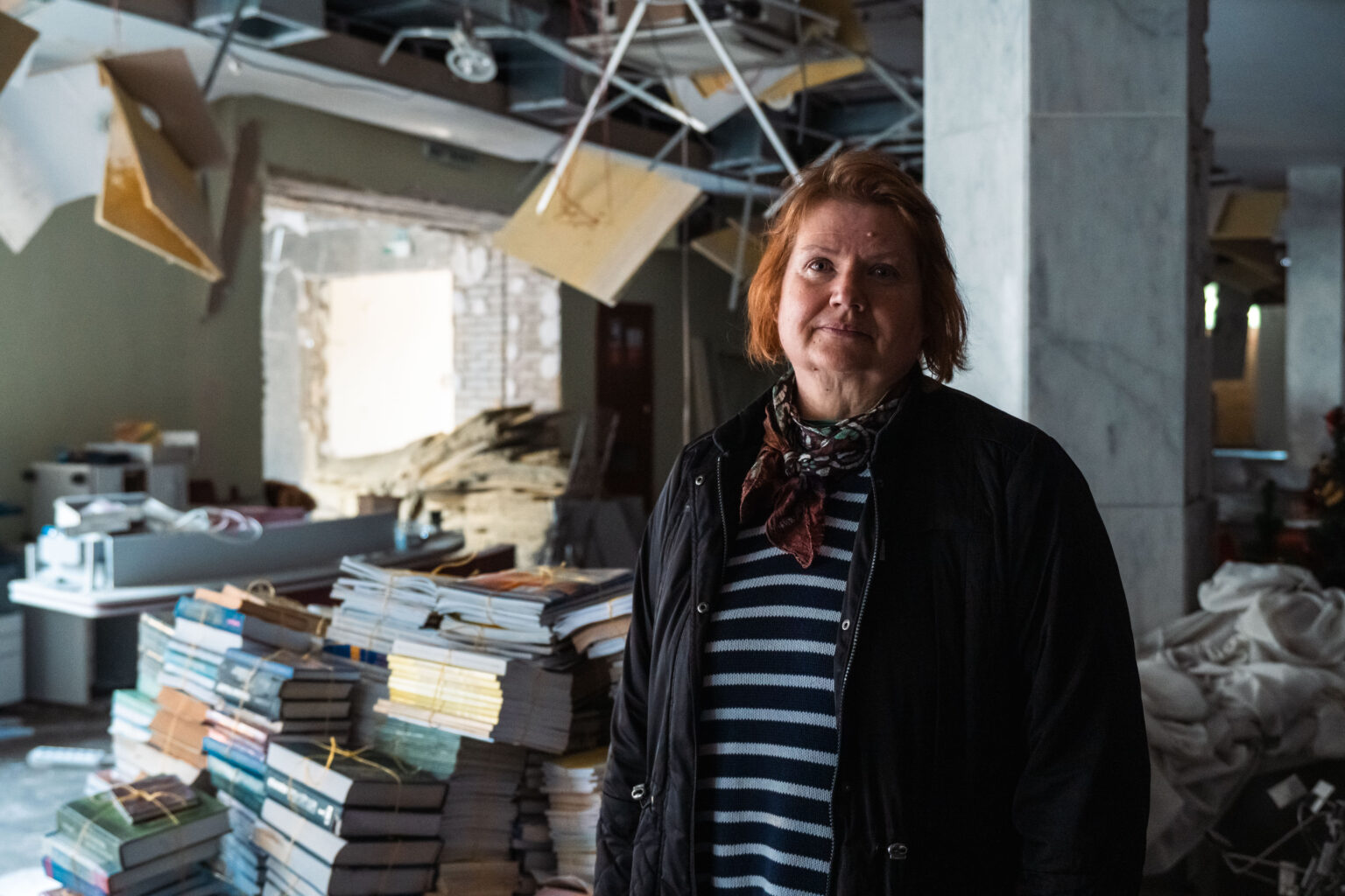 «Усі книги, які ми знайшли під завалами — хоч цілі, хоч побиті — були спущені до книгосховища, уже звідти ми поступово привозимо більш сучасні примірники до нового приміщення» .