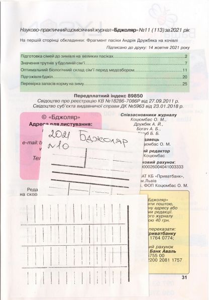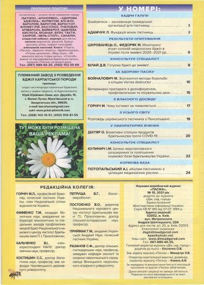 2. «Бджоляр» №10 – науково-практичний щомісячний журнал, який розповідає про передовий досвід утримання промислових, напівпромислових та любительських пасік України, Польщі та світу. Журнал «Бджоляр» подає технології пасічникування у різних системах вуликів, конструкції різноманітного обладнання та інвентарю, які полегшують роботу пасічника з бджолами.