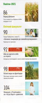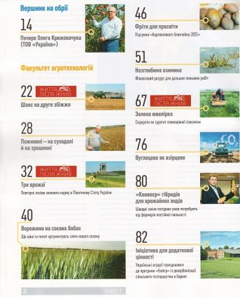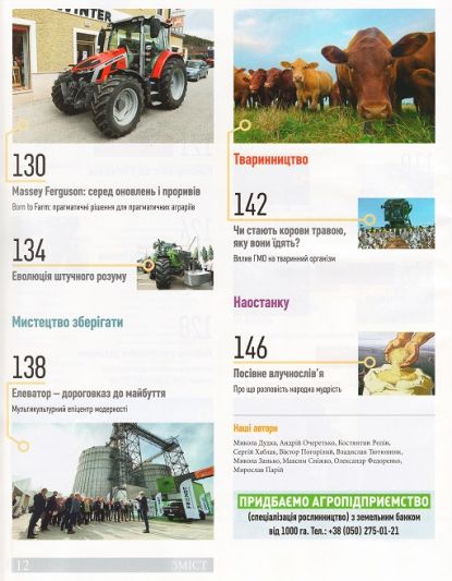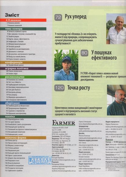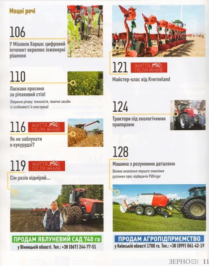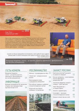 1. «The Ukraininan Farmer» №10 – аграрний журнал про зернові культури – пшеницю, кукурудзу, соняшник, ріпак, сою, сорго; молочне скотарство та свинарство; різні види с/г техніки – трактори, комбайни, сівалки, культиватори, обприскувачі; зберігання зерна.