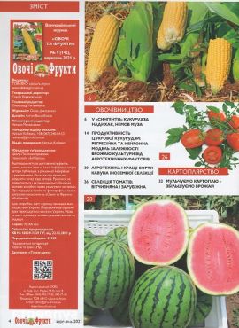 6. «Овочі та фрукти» №9 – популярний журнал для фермерів. Єдине професійне видання в Україні, яке охоплює відразу три напрямки: овочі, фрукти і ягоди. На сторінках журналу міститься багато актуальної інформації про сортове розмаїття овочевих і плодово-ягідних культур, про сучасні технології їх вирощування, зберігання і переробки, а також світові тенденції розвитку насінництва. Видання висвітлює практичні поради з будівництва та ефективного використання теплиць і парників, рекомендації з вибору садового і городнього інвентарю, а також багато іншої важливої та корисної інформації.