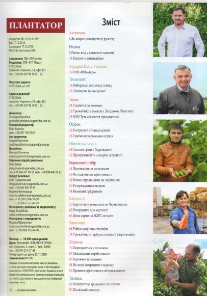 Аграрний журнал про сучасні технології вирощування в закритому та відкритому ґрунті «Плантатор» №6