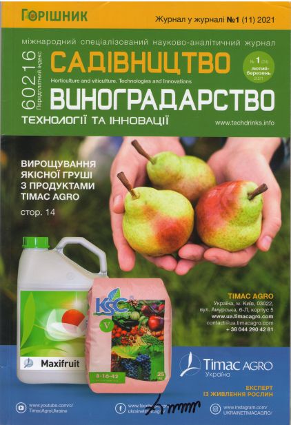 6. Щомісячний всеукраїнський спеціалізований науково-аналітичний журнал «Садівництво. Виноградарство. Технології та інновації» №1 для фермерів, керівників агрофірм, виробничо-комерційних об’єднань, колективних і кооперативних с / г підприємств. Це журнал у журналі 3 в 1. Його доповнюють часописи «Горішник .Технології та інновації, вирощування та переробка горіхів» та «Напої .Технології та інновації».