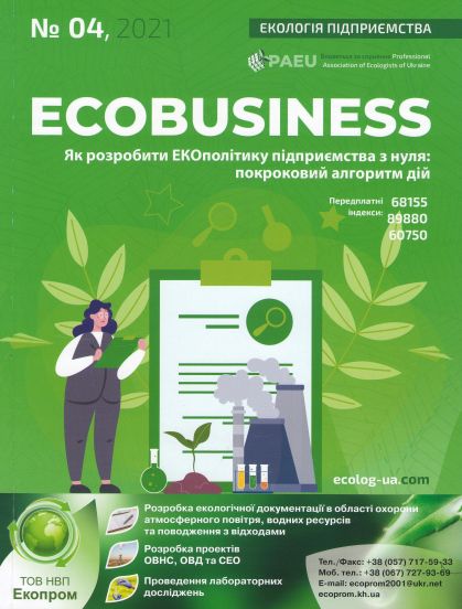 4. Виробничо-практичний щомісячний журнал в галузі екології «ECOBUSINESS. Екологія підприємства» №4 є лідером серед ділових видань України в сфері промислової екології і надійний помічник у роботі менеджера природоохоронної діяльності. Журнал надходить до наукової бібліотеки з 2021року.