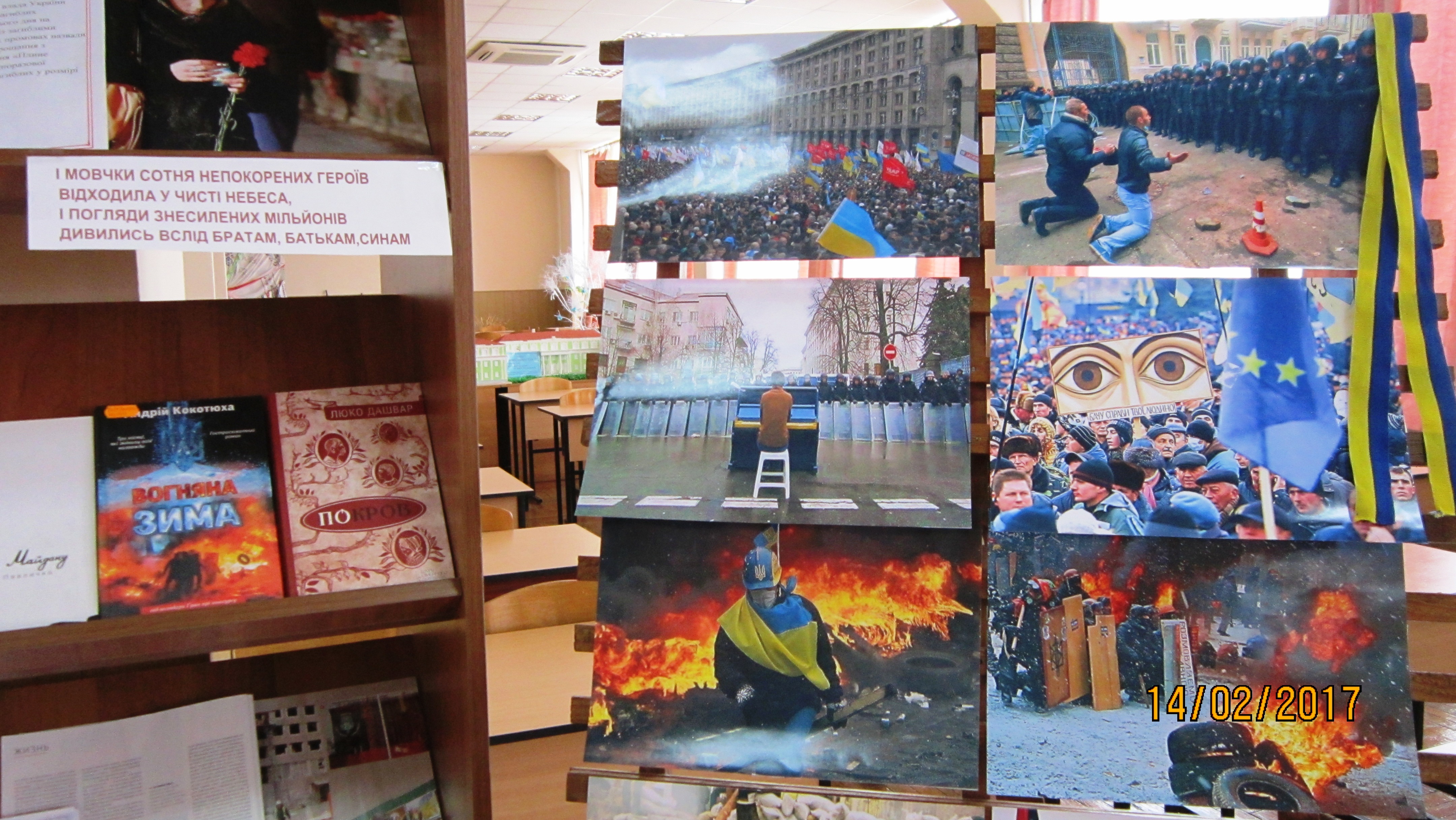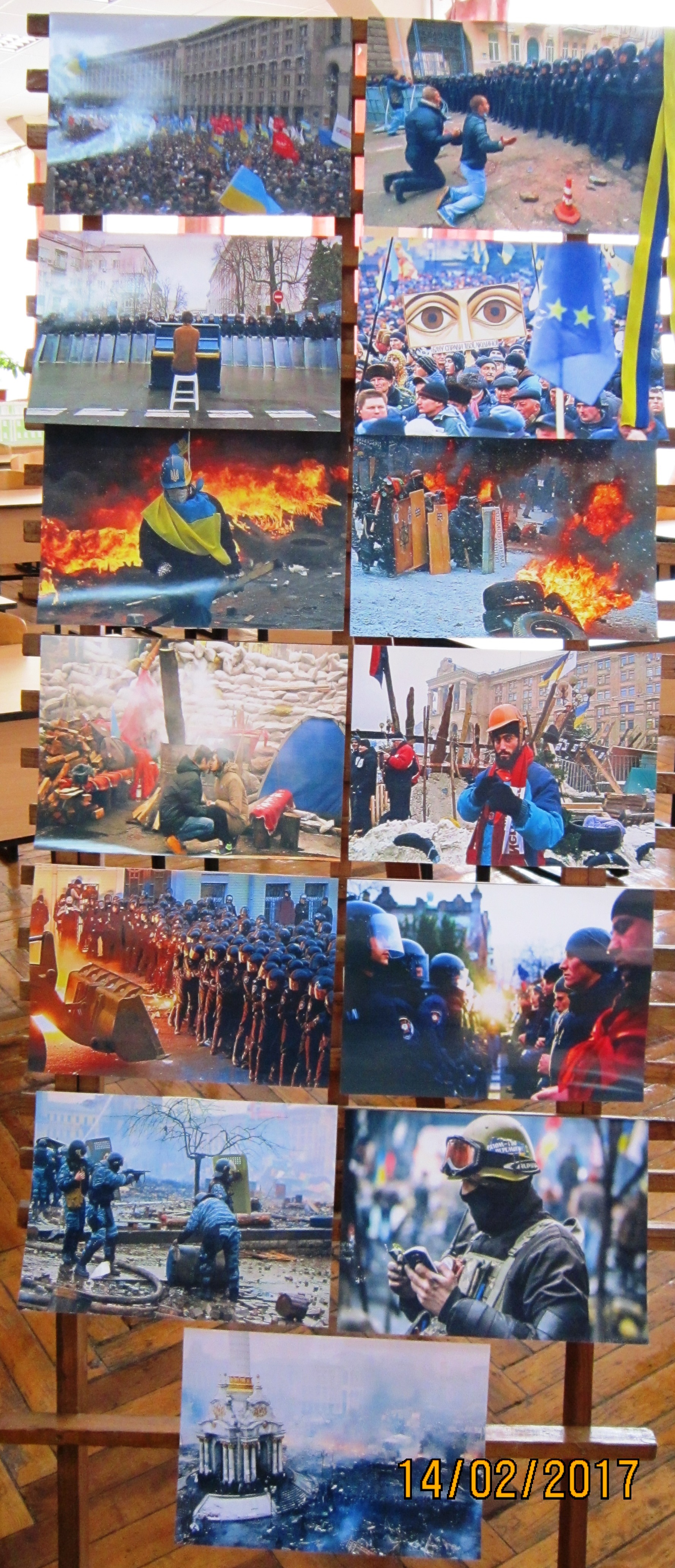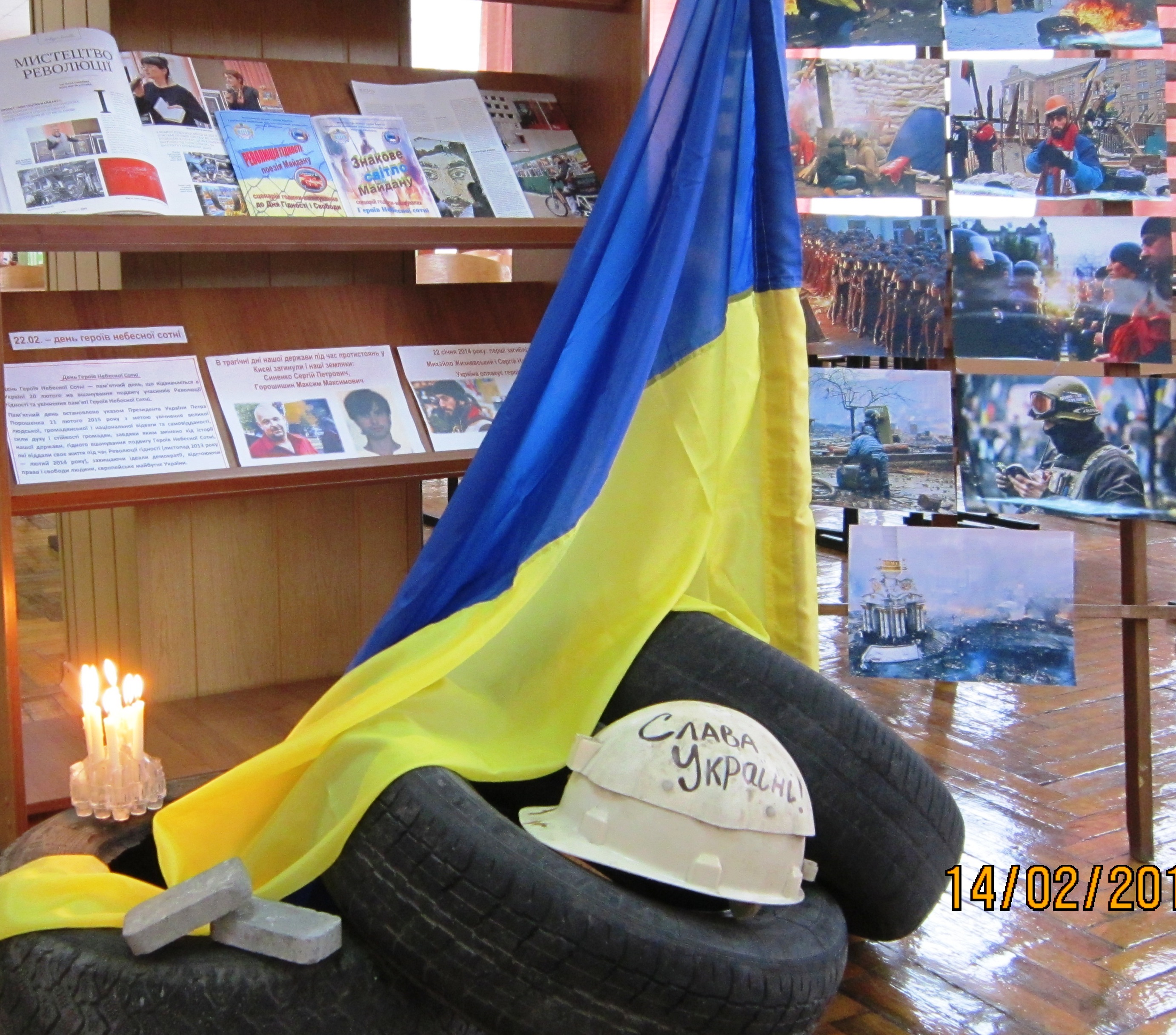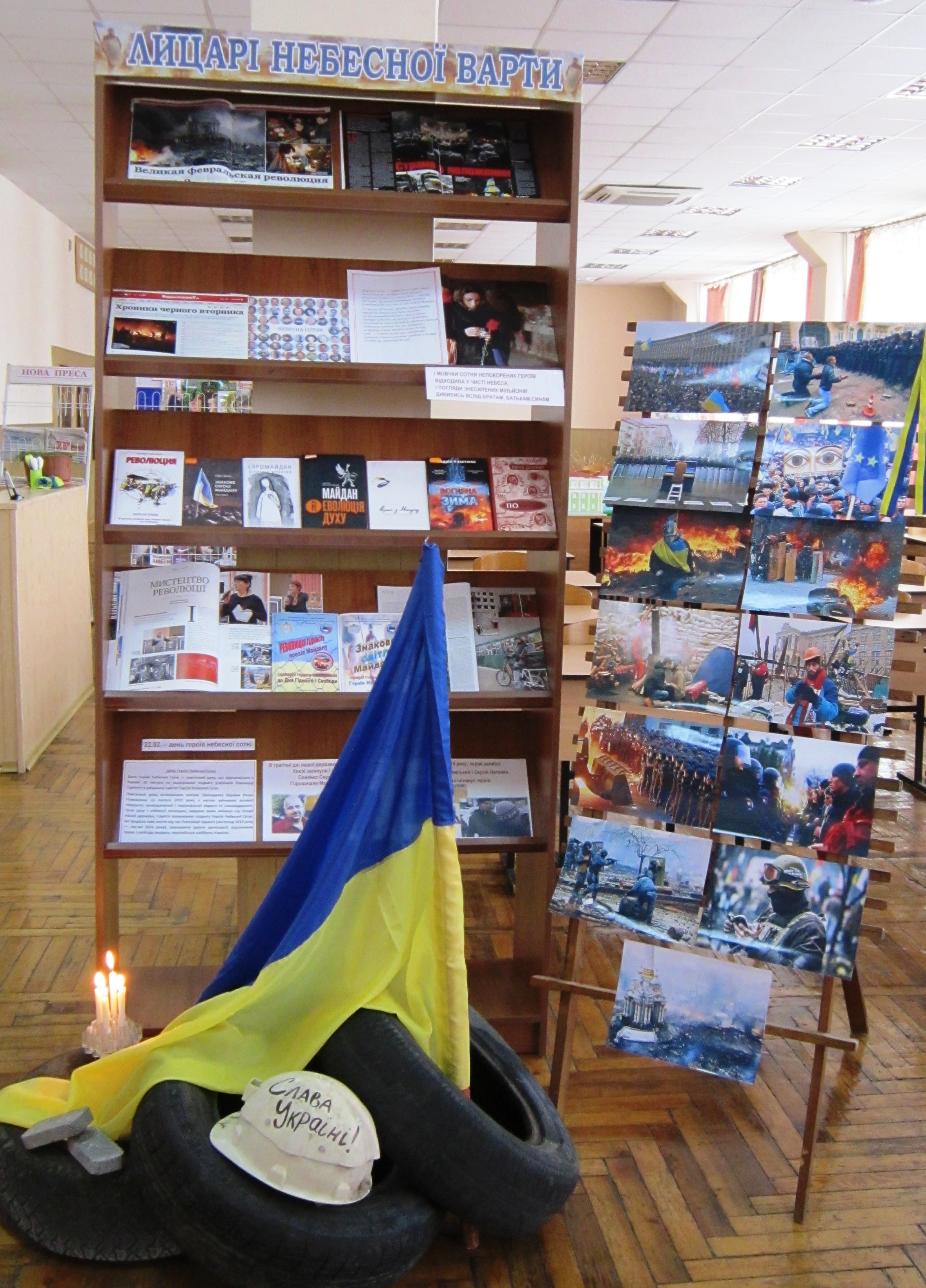 З нагоди річниці вшанування Героїв Небесної Сотні, який відзначається 20 лютого, наукова бібліотека підготувала виставку-інсталяцію «Лицарі небесної варти», на якій представлена хроніка історичних подій зими 2013-2014 років, імена героїв «Небесної Сотні», кращі світлини Революції і мистецтво Майдану.
