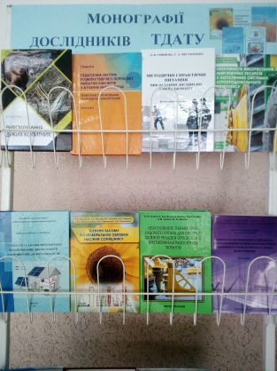 До Дня української науки бібліотека презентує віртуальну виставку «Фундатори університетської науки», яка є присвятою знанним та пошанованим, авторитетним у своїй науковій царині вченим. «Метабібліографія серії «Біобібліографістика провідних вчених ТДАТУ» підсумовує десятирічний випуск бібліографічних покажчиків даної серії. Також до свята підготовлена експрес -виставка «Монографії дослідників ТДАТУ».