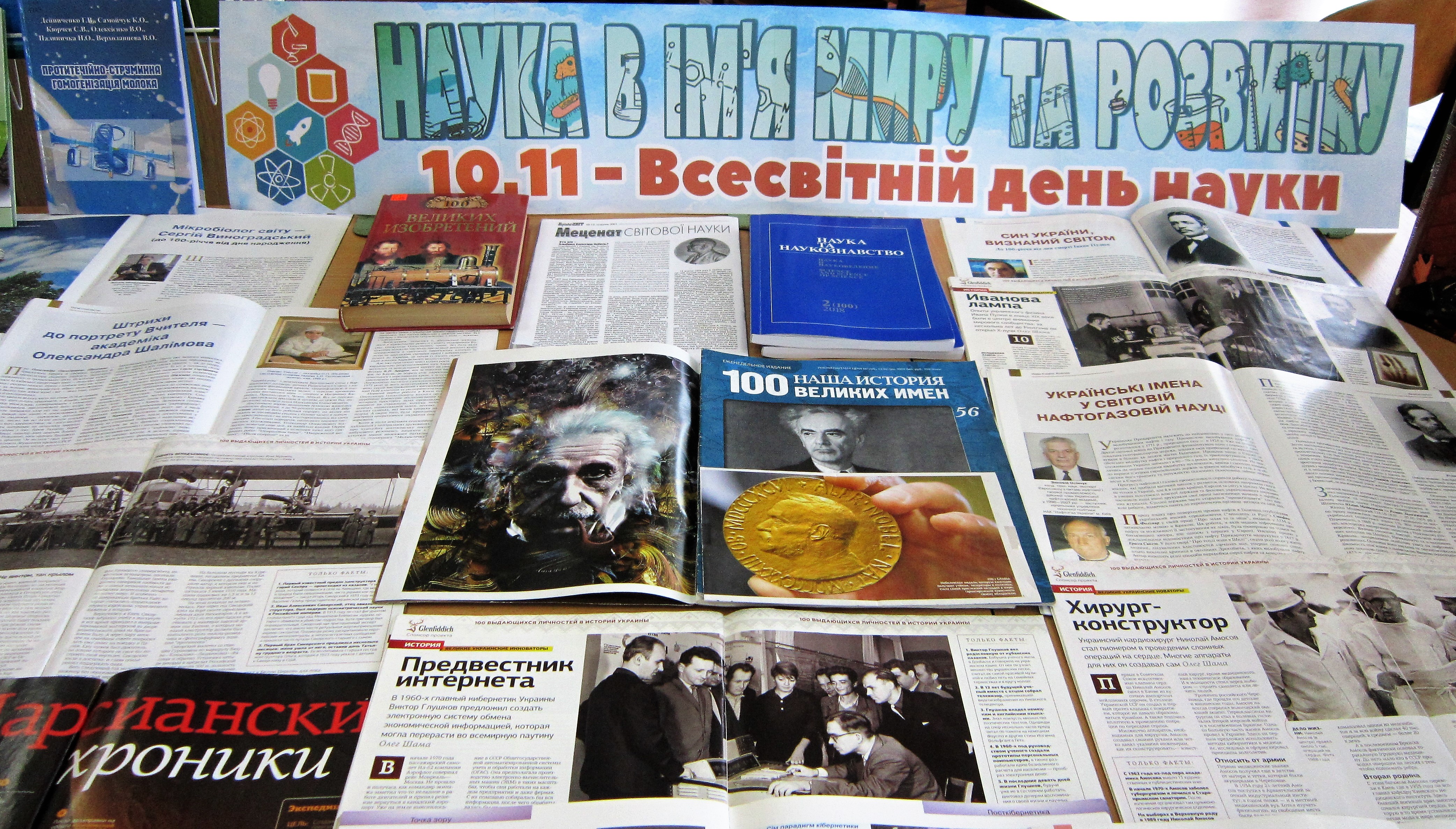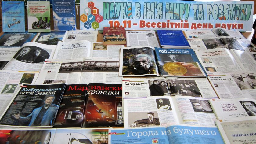 З нагоди Всесвітнього дня науки бібліотека університету презентує перегляд «Наука в ім’я миру та розвитку». До уваги читачів представлені книги серії «Сто великих …» та біографічного видання «100 великих імен», матеріали про світову наукову еліту, українських науковців зі світовим іменем. Окремо представлені монографії – наукові видання викладачів університету.