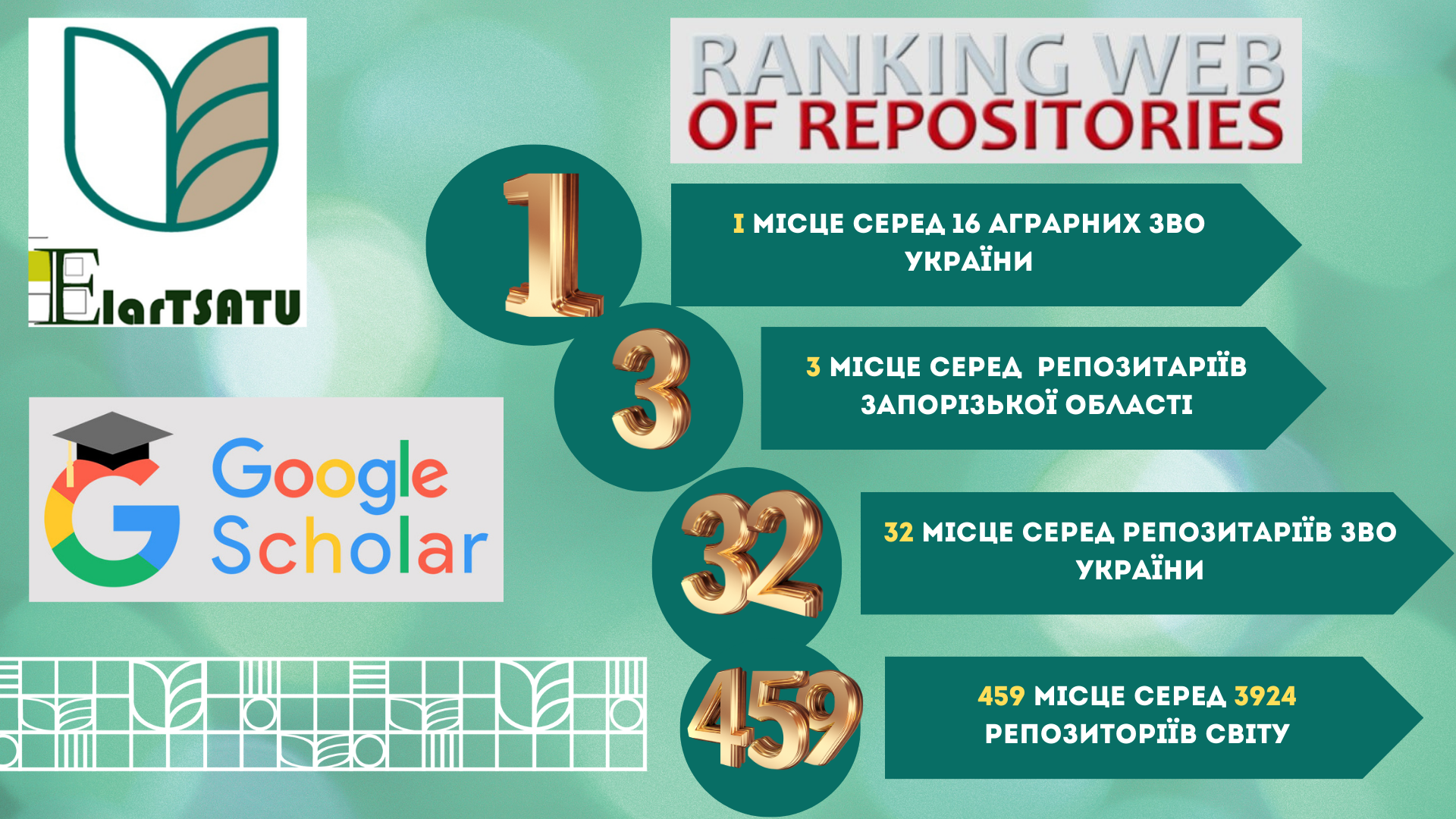 - 32 місце серед репозитаріїв ЗВО України;