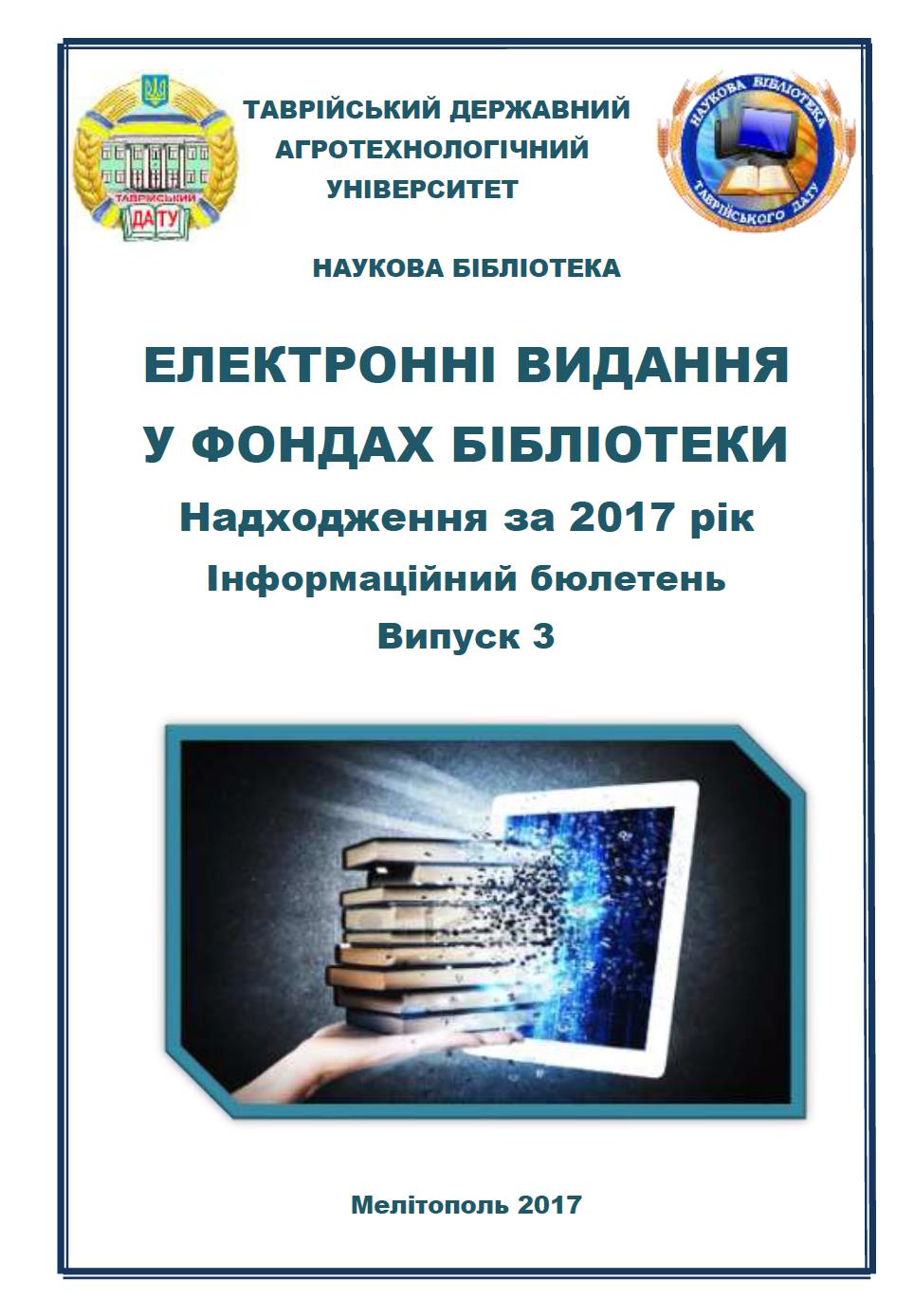 Наукова бібліотека презентує інформаційний бюлетень «Електронні видання у фондах бібліотеки: надходження за 2017 рік» 3 випуск.