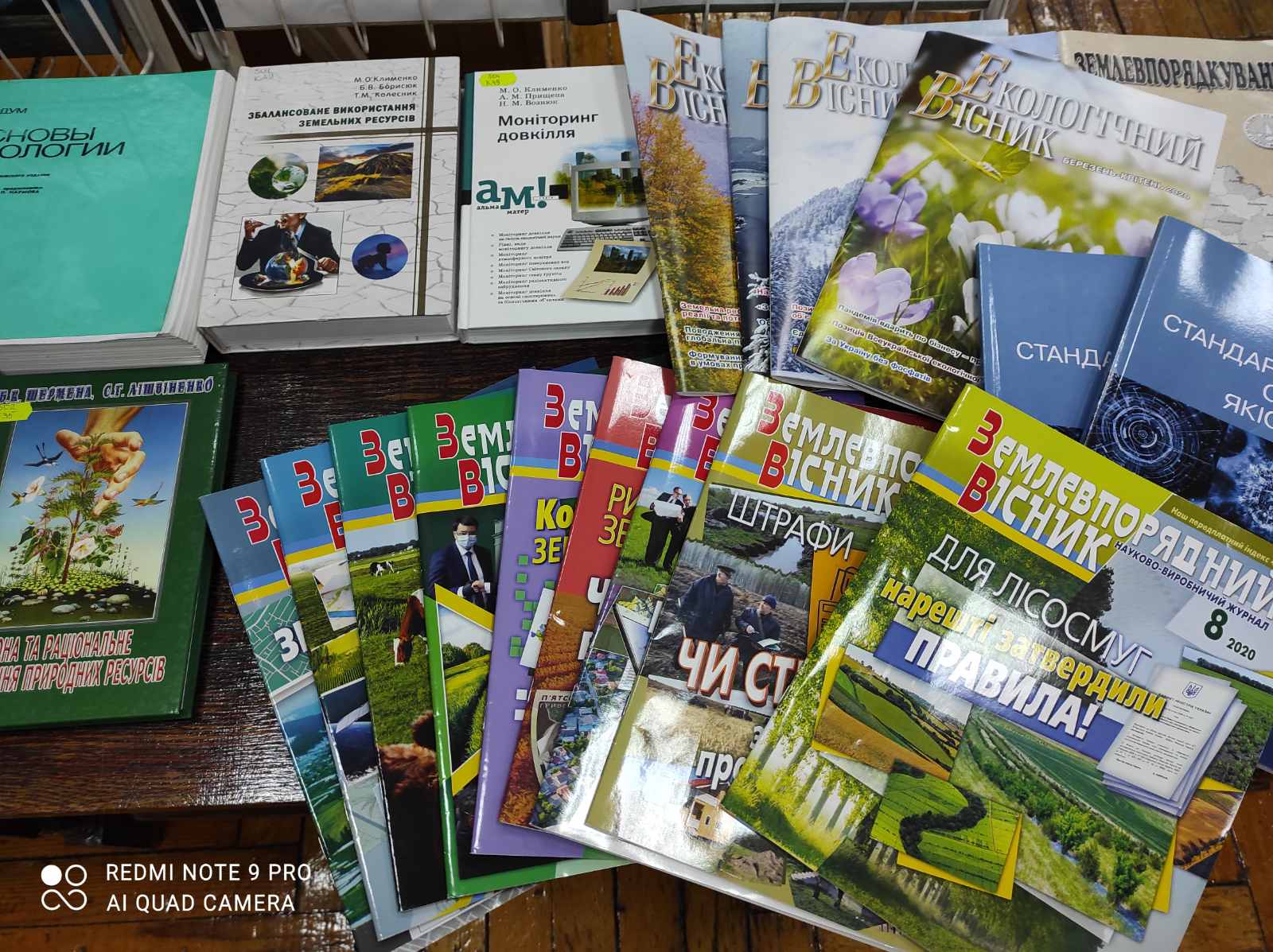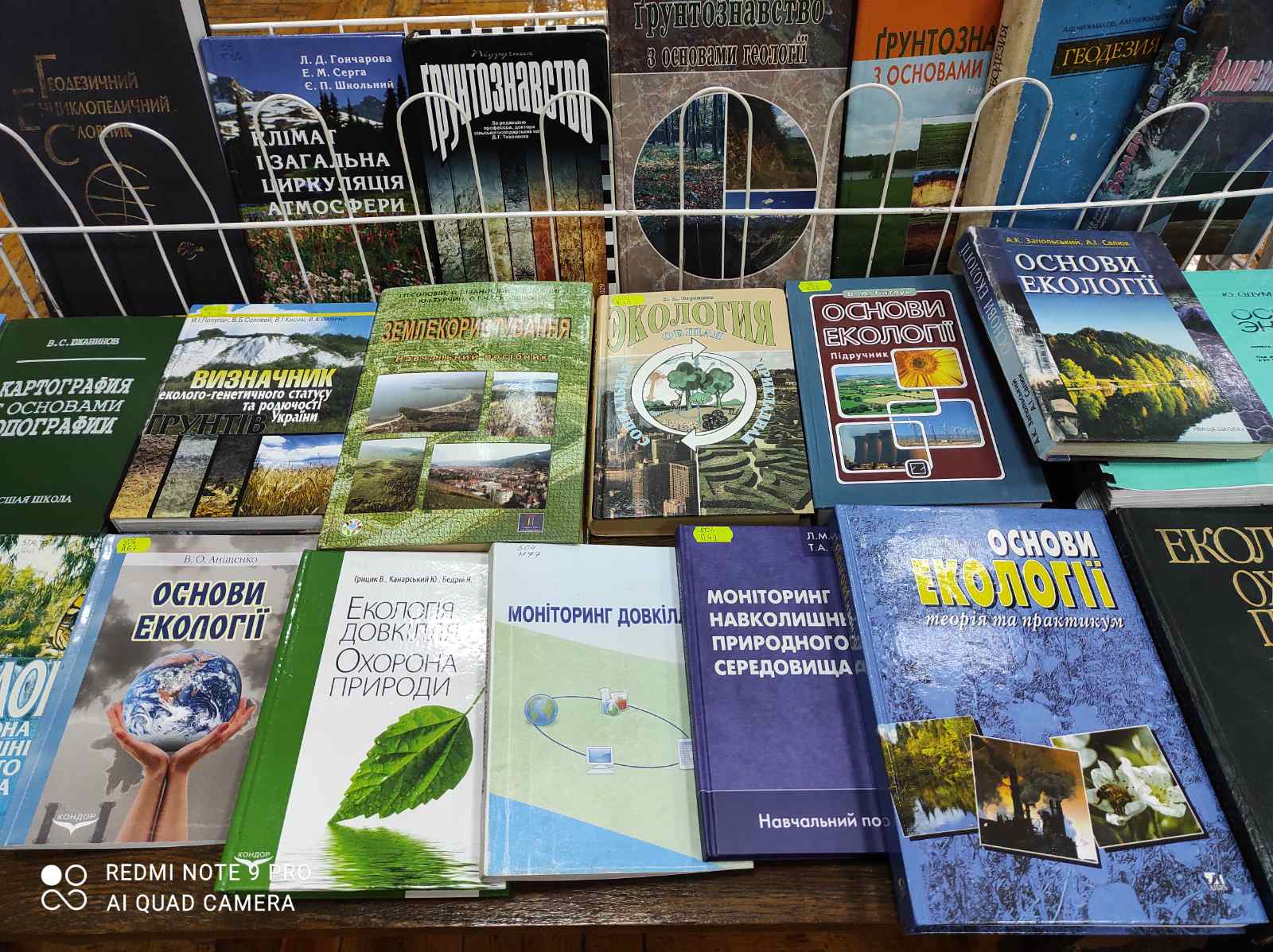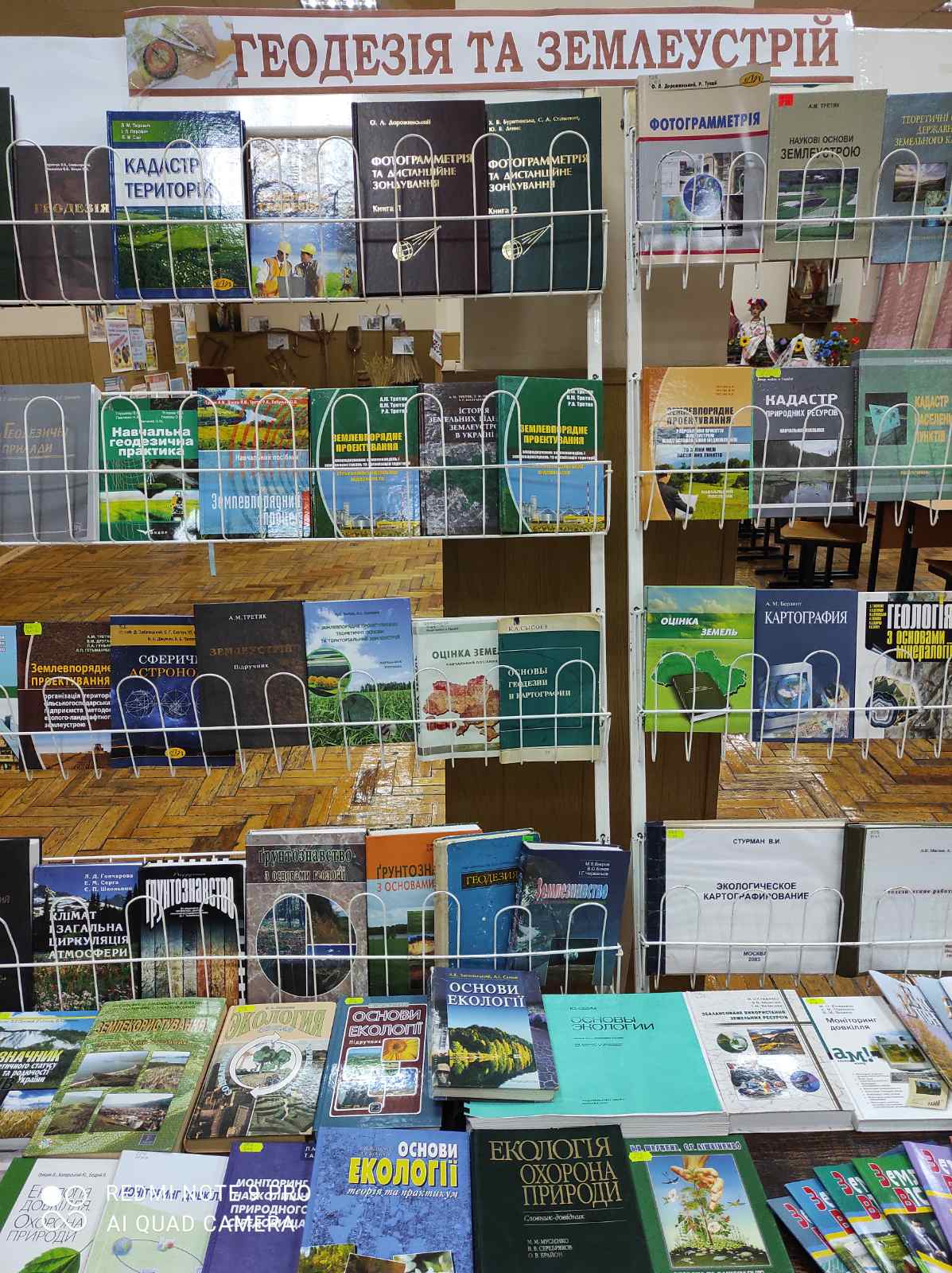 На виставці представлені навчальні посібники: В. Грабовий «Геодезія», С. Вилка «Інженерна геодезія», «Геодезія» за редакцією В. Горлачука, А. Третяк «Землеустрій», «Оцінка земель» за редакцією М. Ступеня, «Землевпорядне проектування» за редакцією А. Третяка.