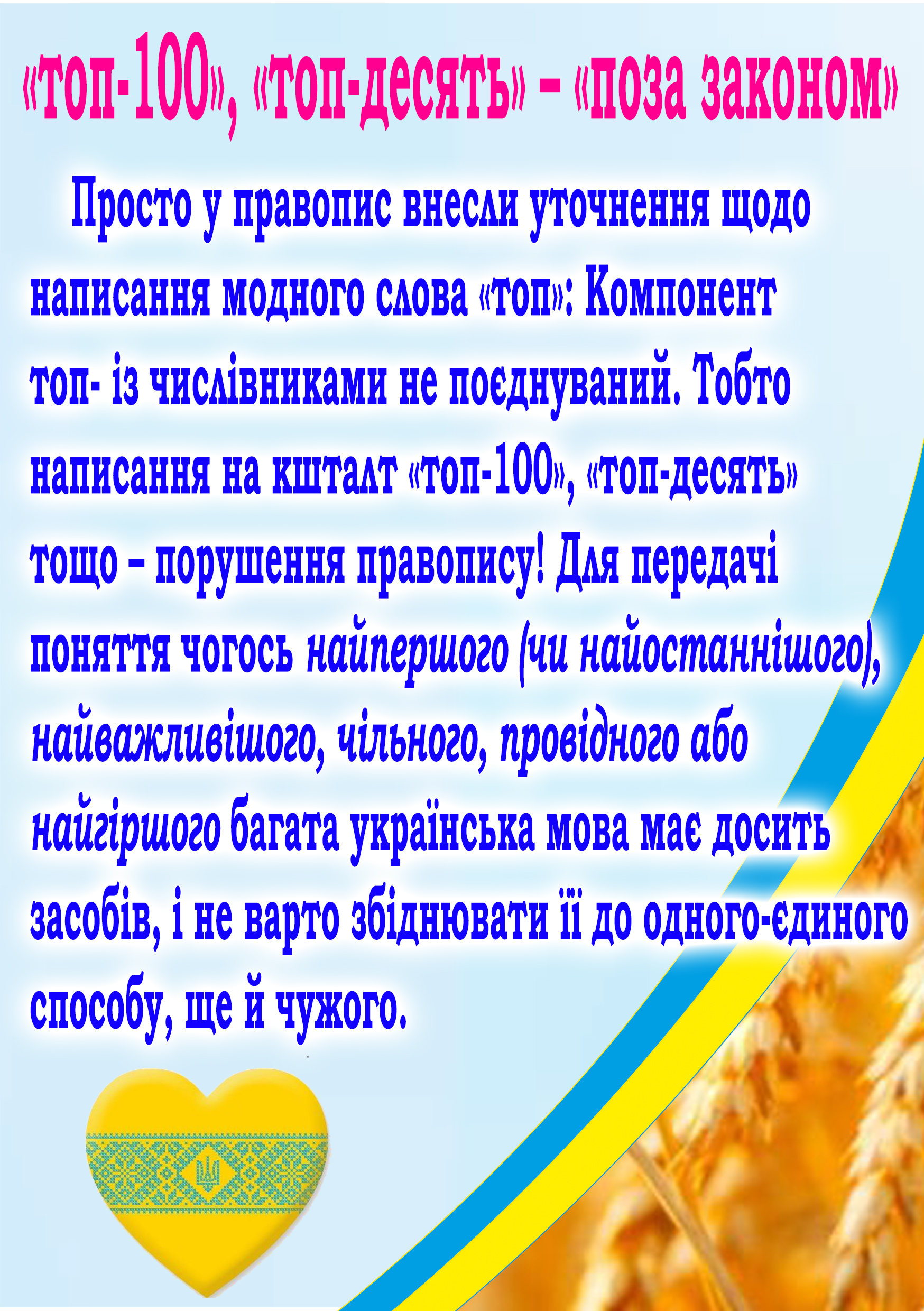 Поступове впровадження нового правопису в усіх сферах життя українців передбачено протягом наступних п’яти років, проте ми – починаємо змінюватися вже сьогодні! Пам’ятайте, що ми – українці, і маємо свою мову!