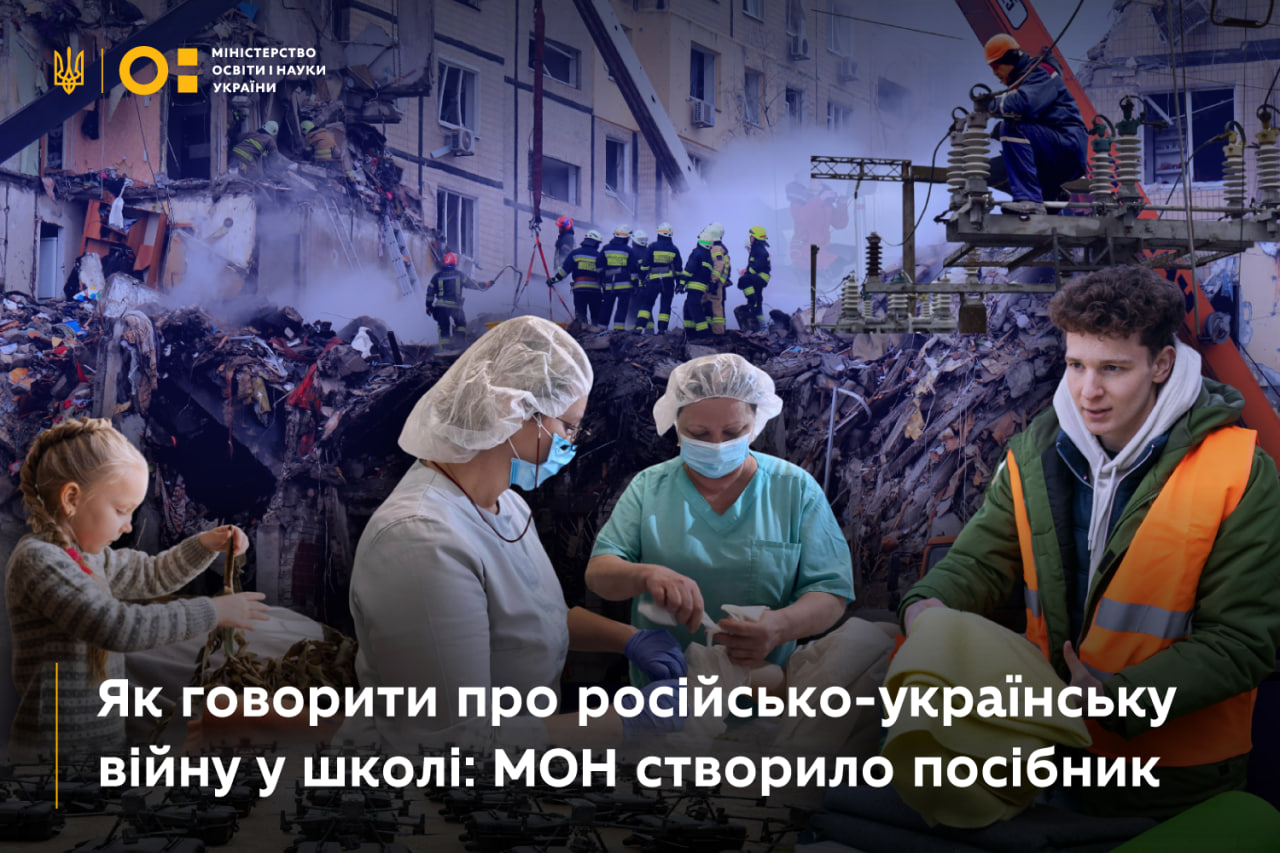 Міністерство освіти і науки розробило посібник «Як говорити про російсько-українську війну у школі? Уроки стійкості, боротьби та перемог». Його мета — сприяти у формуванні громадянської позиції в учнів і учениць, навчити розрізняти факти і фейки, не піддаватися маніпуляціям і ворожій пропаганді.