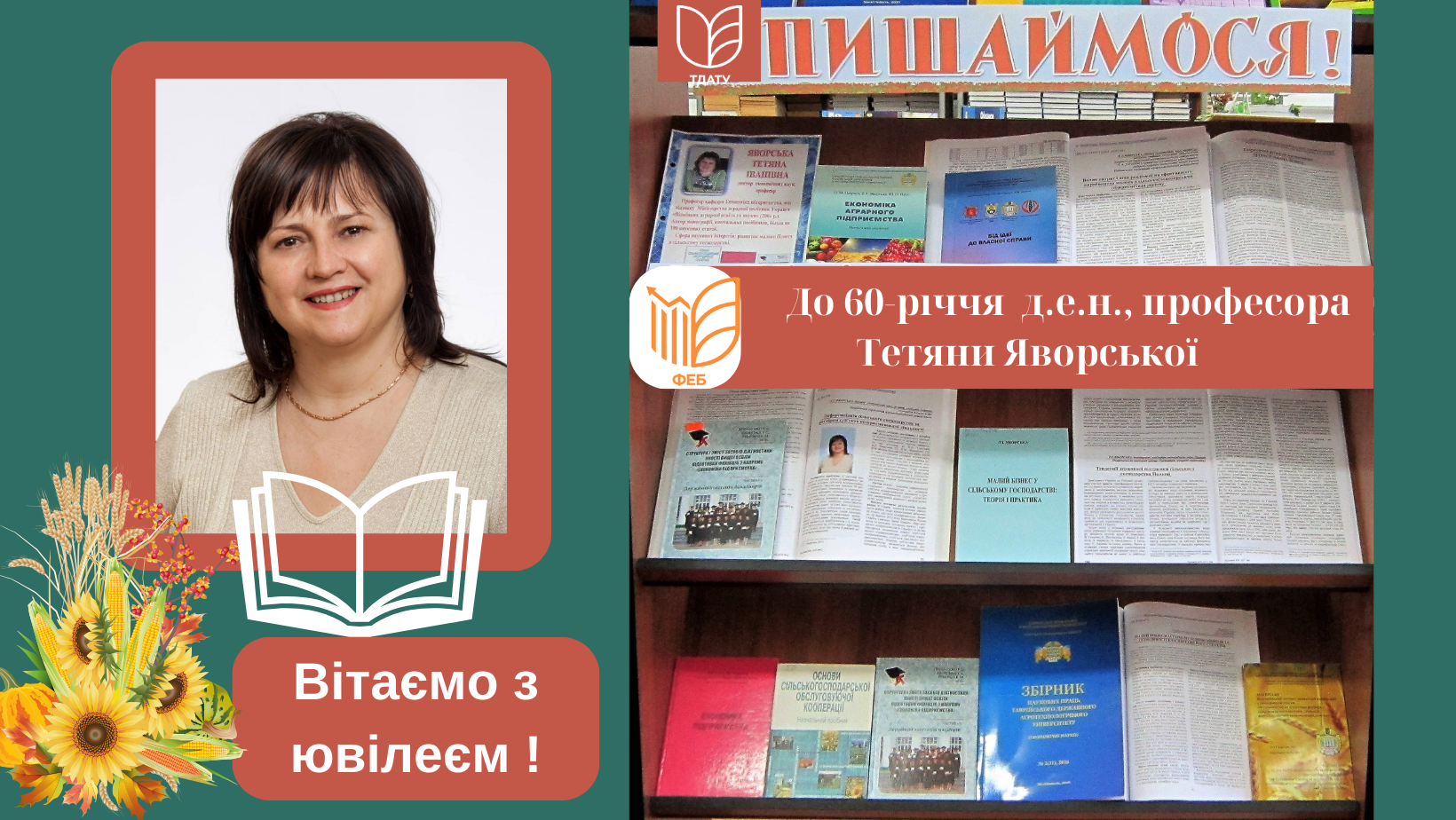 Наукова бібліотека щиро вітає Тетяну Іванівну з ювілеєм! Бажаємо Вам міцного здоров’я, щастя, благополуччя, оптимізму, невичерпної енергії та нових творчих успіхів!