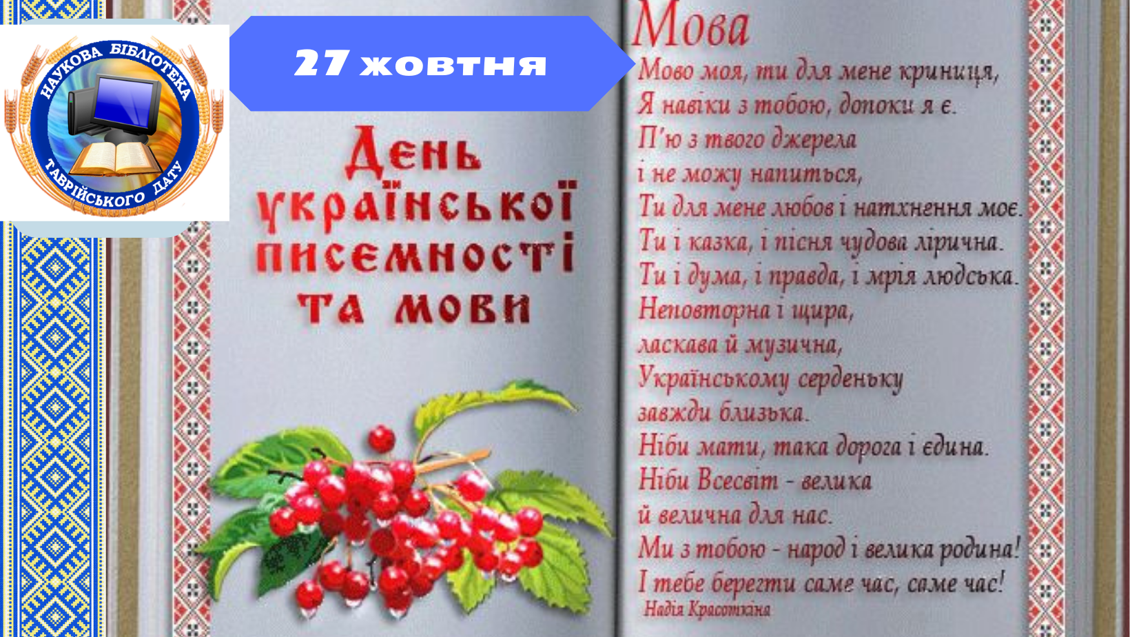 9 листопада 1997 року указом президента «Про День української писемності та мови» було започатковано державне свято День української писемності та мови. Проте з 2023 року, у зв’язку з переходом Православної церкви України на новоюліанський календар, президент Володимир Зеленський підписав указ №455/2023 про перенесення дати святкування Дня української писемності та мови також на 27 жовтня.