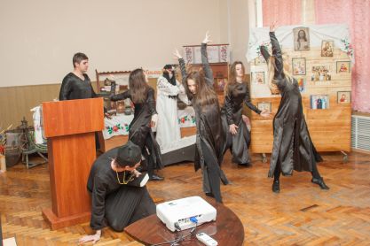 Учасники театральної студії «МОСТ» – Алія Айбетова, Данило Гайдаєнко та масовка: учасники ансамблю «Юність» представили уривок з повісті «Вій», (керівник студії ЦКІД Віталіна Нікітіна).