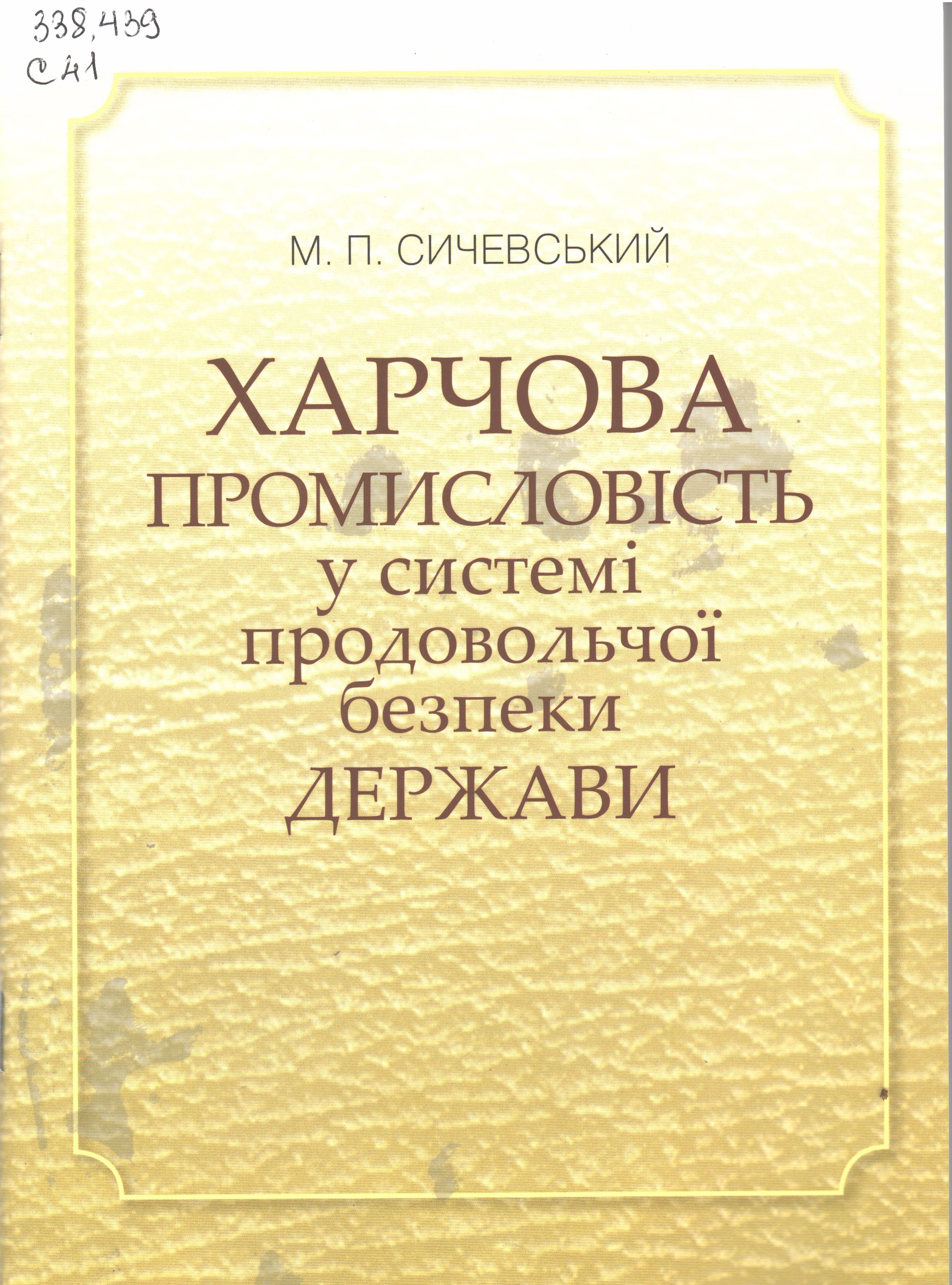 Сичевський, М. П. Харчова промисловість у системі продовольчої безпеки держави / М. П. Сичевський ; НААН України, Інститут продовольчих ресурсів. – К., 2017. – 56 с. : граф., табл.