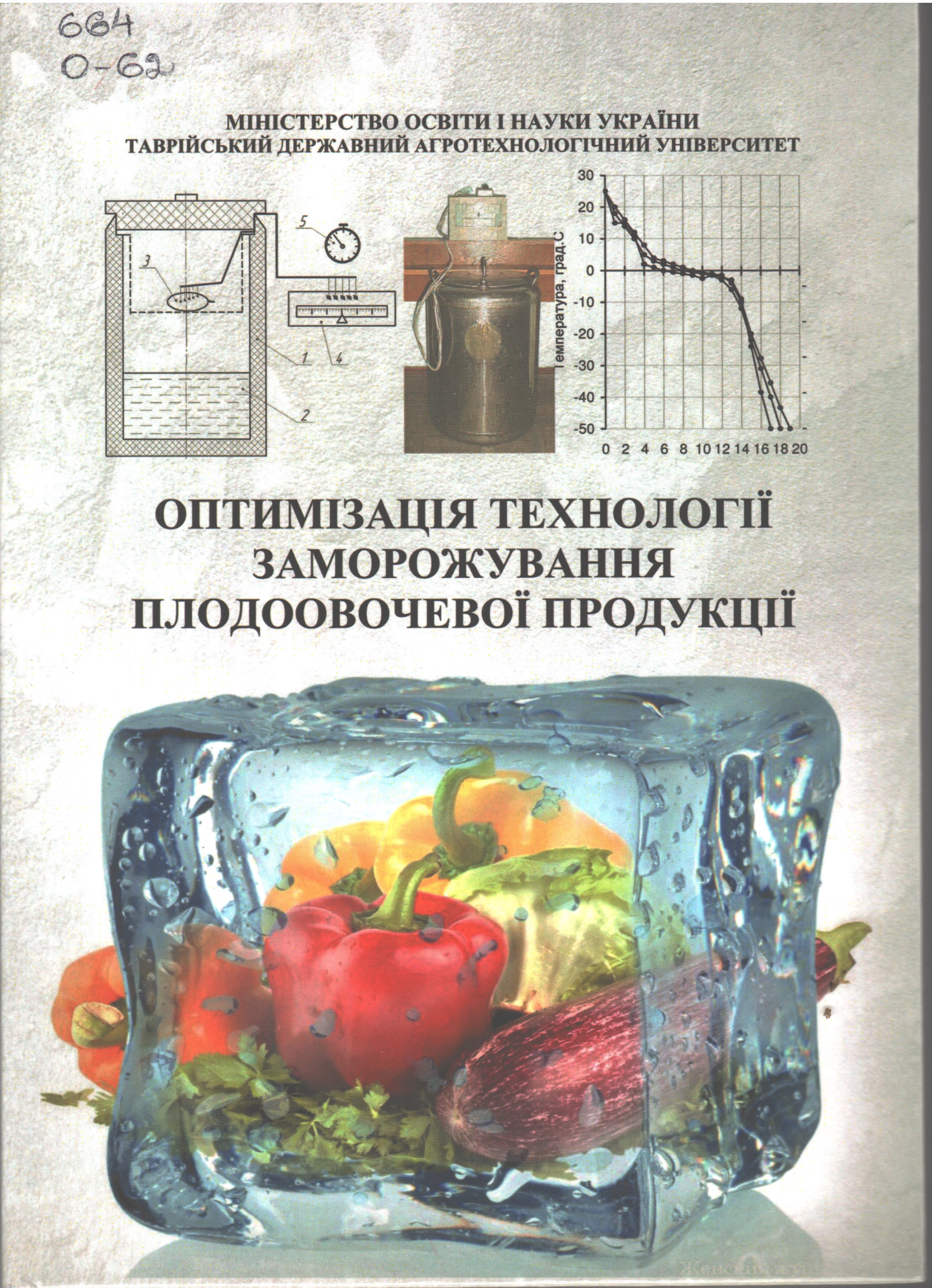 Оптимізація технології заморожування плодоовочевої продукції: монографія / В. Ф. Ялпачик [та ін.] ; ТДАТУ. – Мелітополь, 2018. – 214 с.