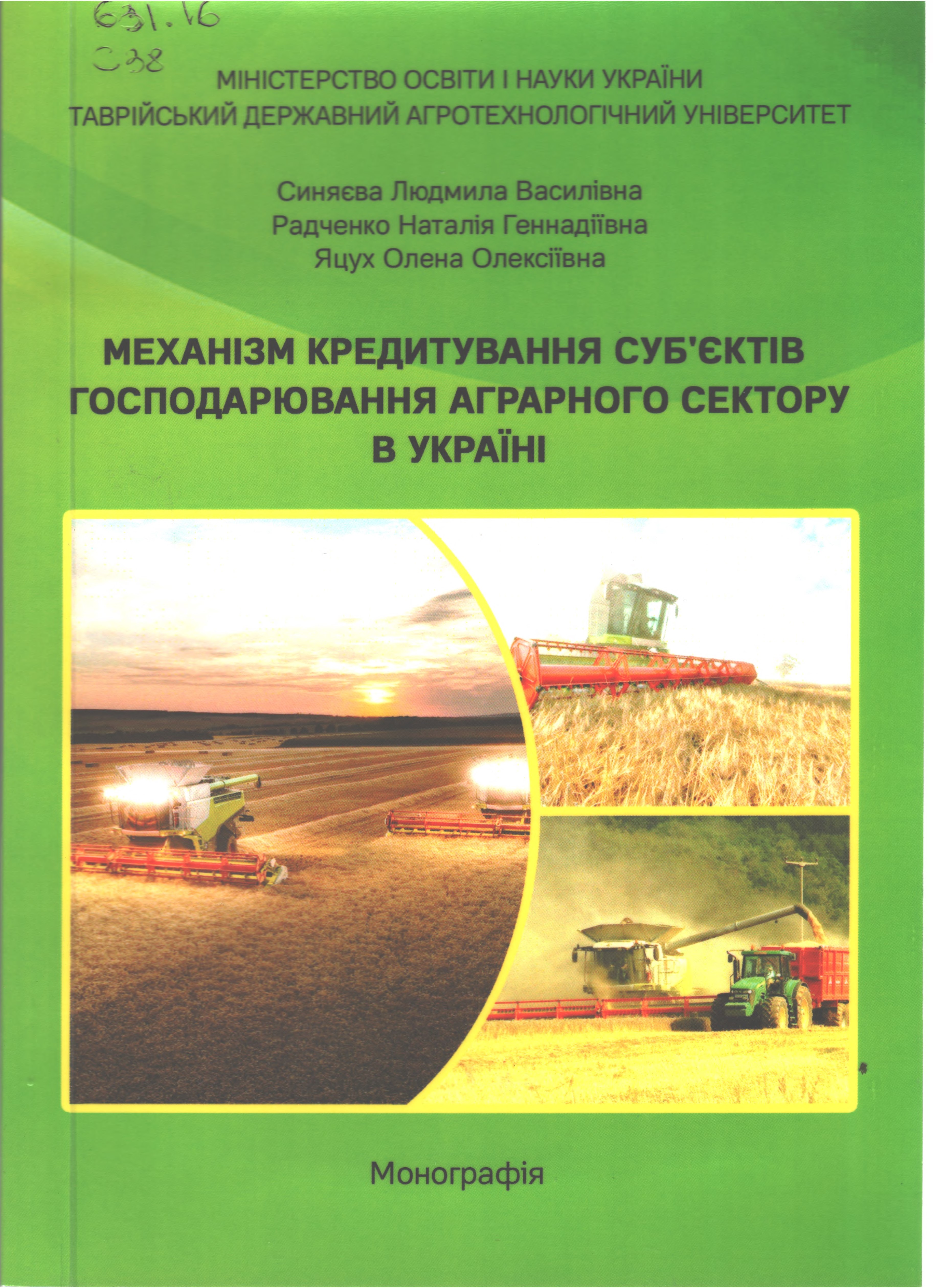 Синяєва, Л. В. Механізм кредитування суб’єктів господарювання аграрного сектору в Україні: монографія / Л. В. Синяєва, Н. Г. Радченко, О. О. Яцух ; ТДАТУ. – Мелітополь, 2018. – 220 с.