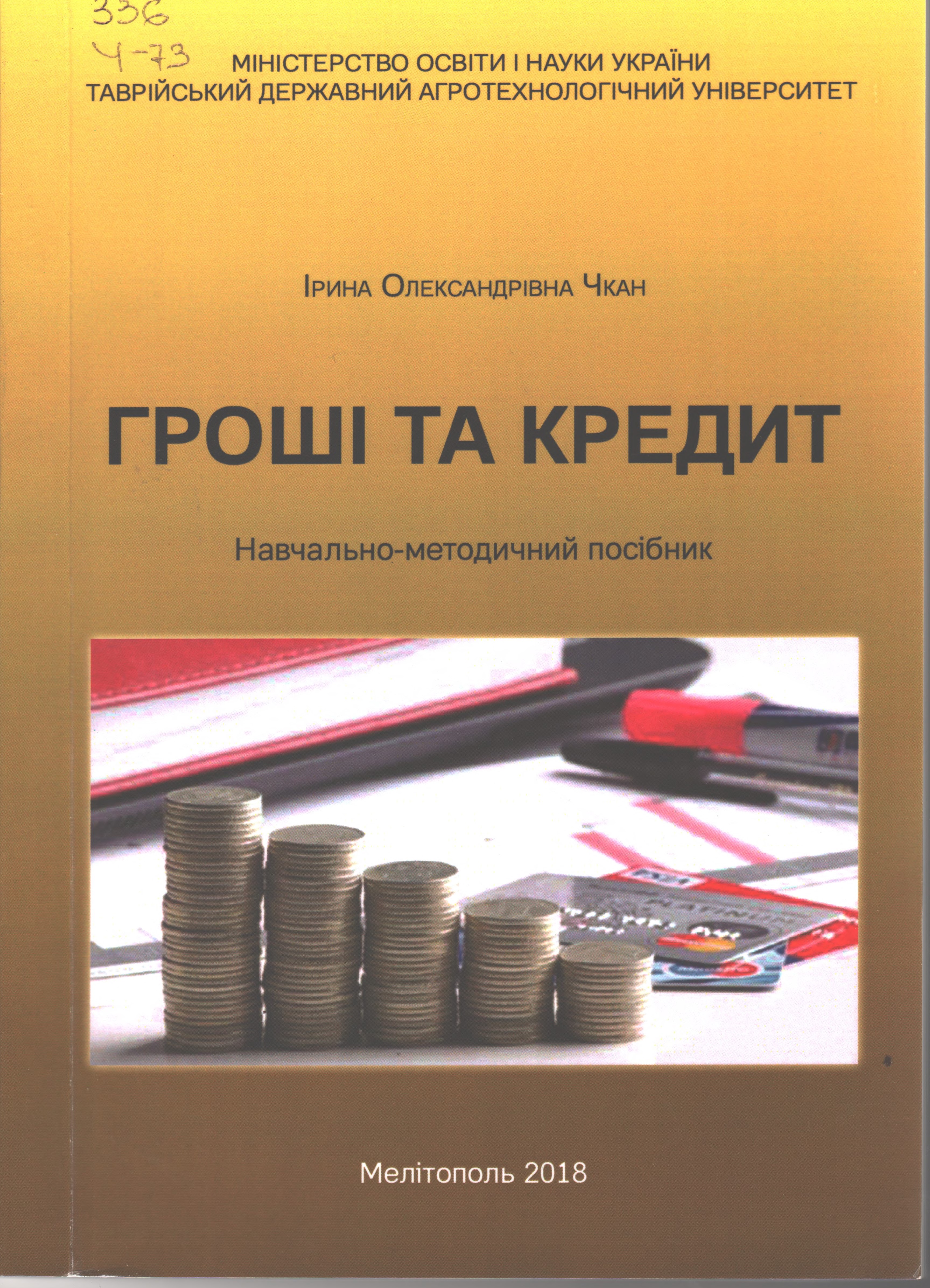 Чкан, І. О. Гроші та кредит: навч.-метод. посібник / І. О. Чкан ; ТДАТУ. – Мелітополь , 2018. – 169 с.