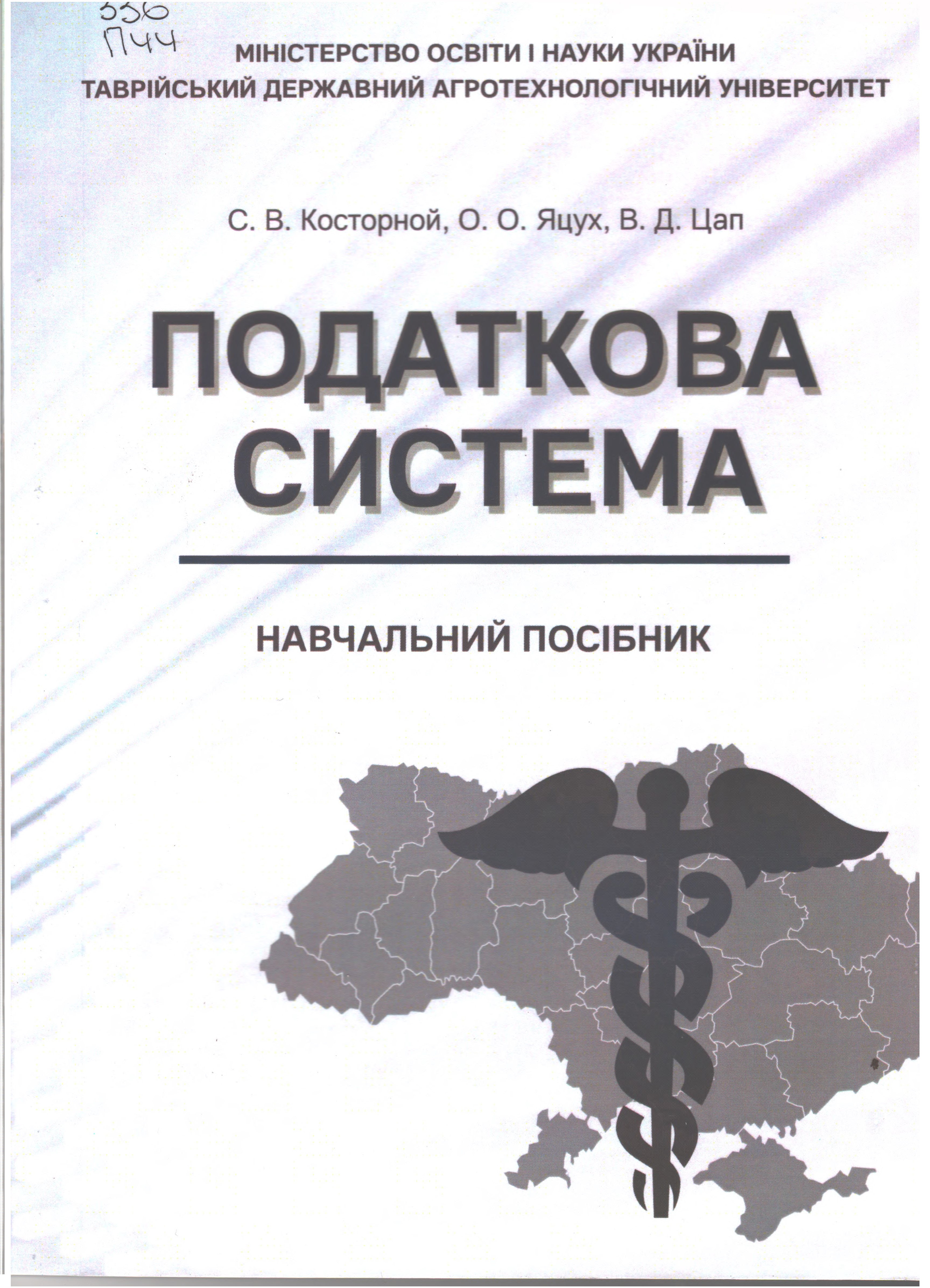 Податкова система : навч. посібник / С. В. Косторной [та ін.] ; за ред. С. В. Косторного ; ТДАТУ. – Мелітополь, 2018. – 196 с. : іл.