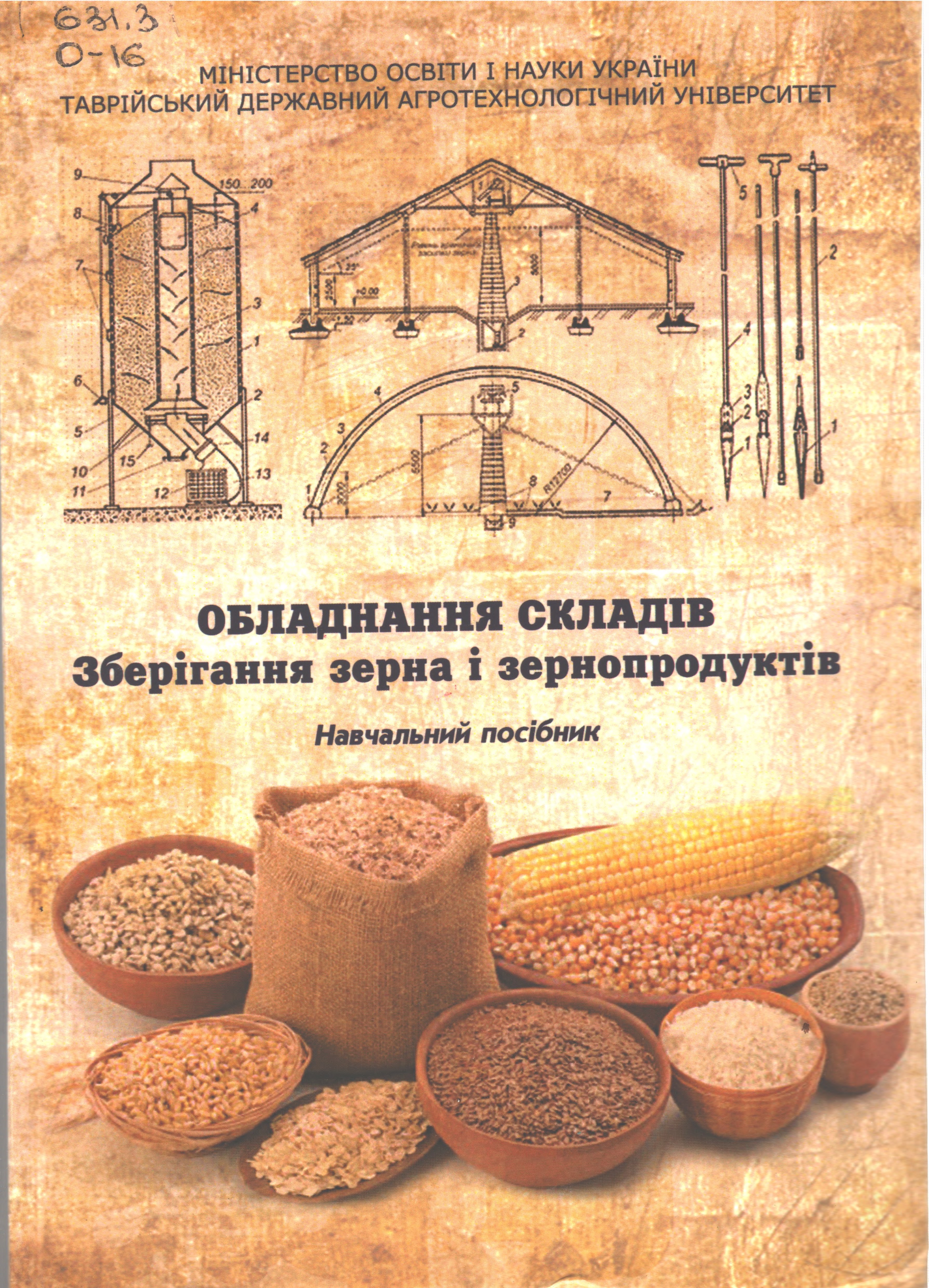 Обладнання складів. Зберігання зерна і зернопродуктів: навч. посібник / В. Ф. Ялпачик [та ін.] ; ТДАТУ. – Мелітополь, 2018. – 293 с. –
