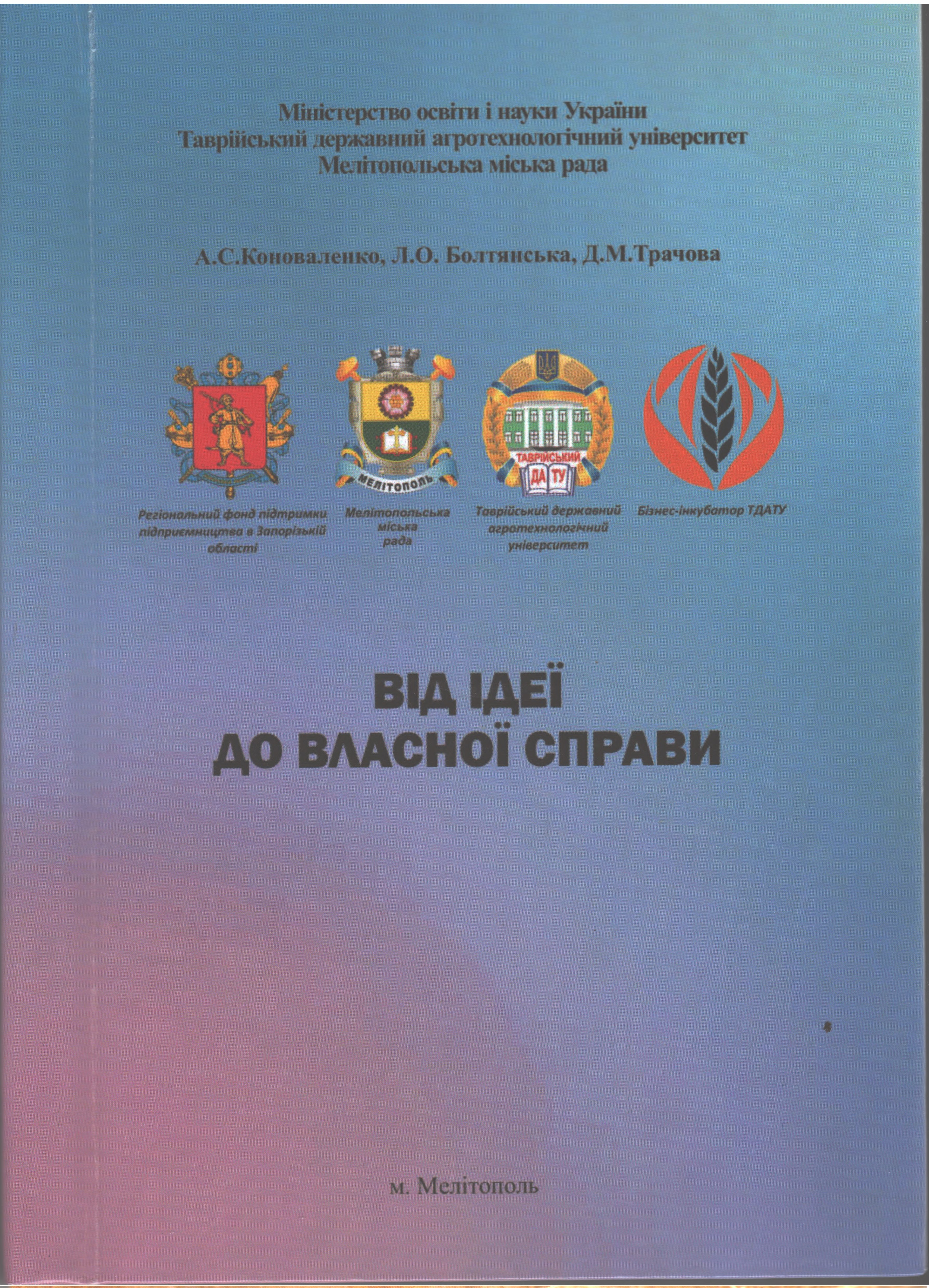 Від ідеї до власної справи : навч. посібник / А. С. Коноваленко [та ін.] ; ТДАТУ. – Мелітополь, 2017. – 279 с. : табл.
