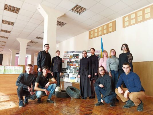 Про ті важкі та буремні місяці нагадує і виставка-інсталяція наукової бібліотеки – шини, бруківка, прапор України, каска із написом «Слава Україні». Також представлено: кращі світлини Революції Гідності, документальні та художні видання подій Майдану 2014 року: часописи «Новое время страны», «Кореспондент», «Українська культура»; книги: Н. Семенченко «Революція», А. Мухарський «Майдан. Революція духу», Д. Павличко «Вірші з майдану», М. Матіос «Приватний щоденник», А. Кокотюха «Вогняна зима», Д. Сухінін «Вогняні роси», Н. Рубінська «Крила надії» тощо.