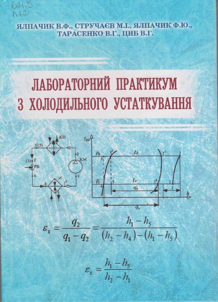 Лабораторний практикум з холодильного устаткування : навч. посібник / В. Ф. Ялпачик [та ін.]. – Мелітополь , 2017. – 203 с. : рис., табл. Посібник рекомендований для студентів навчальних закладів III і IV рівня акредитації для використання у навчальному процесі.