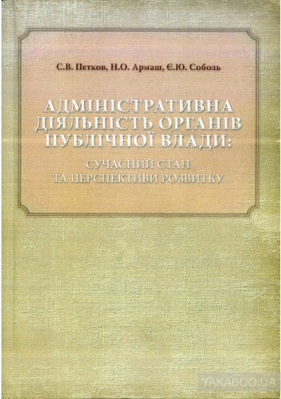Пєтков, С. В. Адміністративна діяльність органів публічної влади: сучасний стан та перспективи розвитку : навч. посібник / С. В. Пєтков, Н. О. Армаш, Є. Ю. Соболь. – К., 2019. – 207 с.