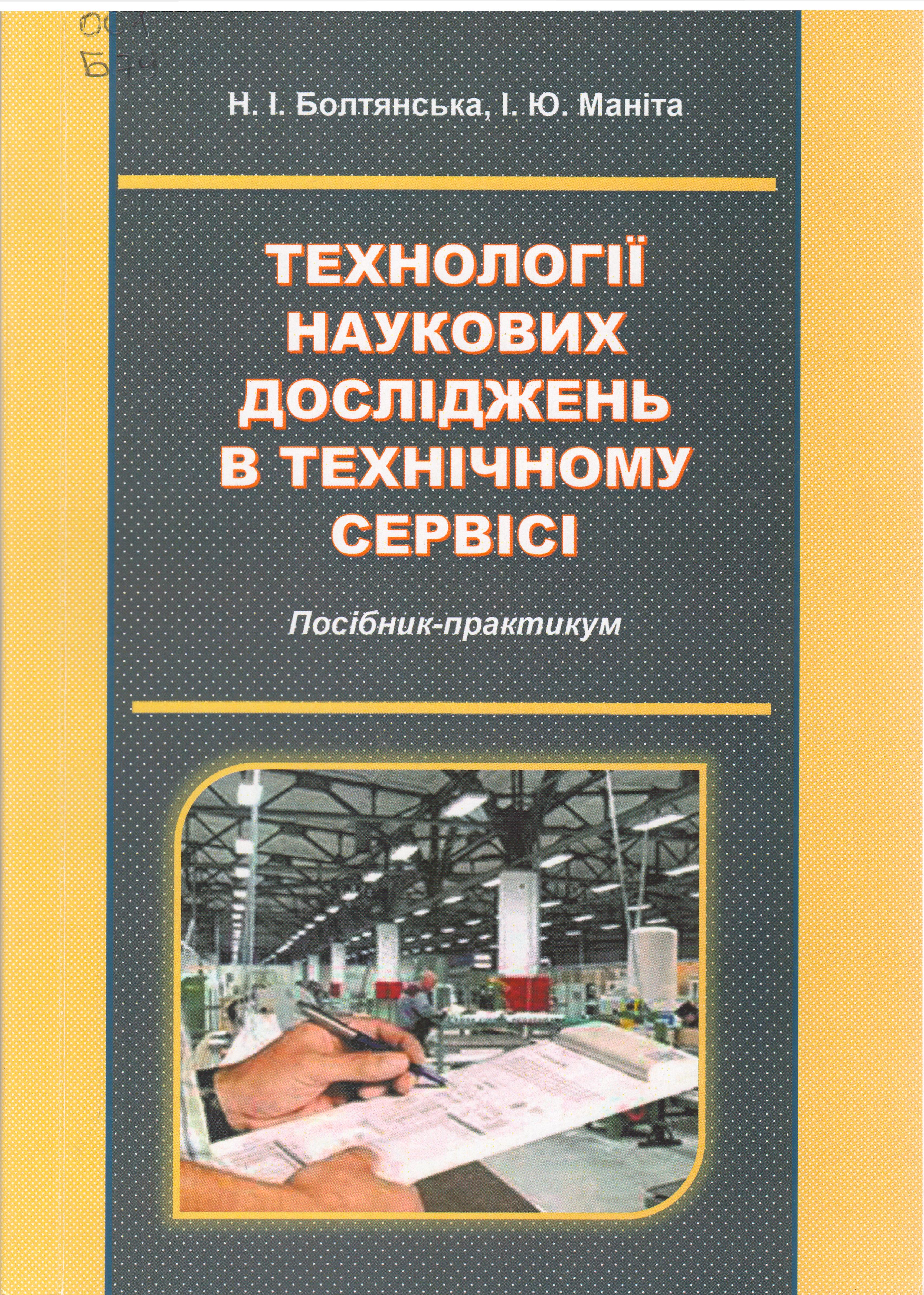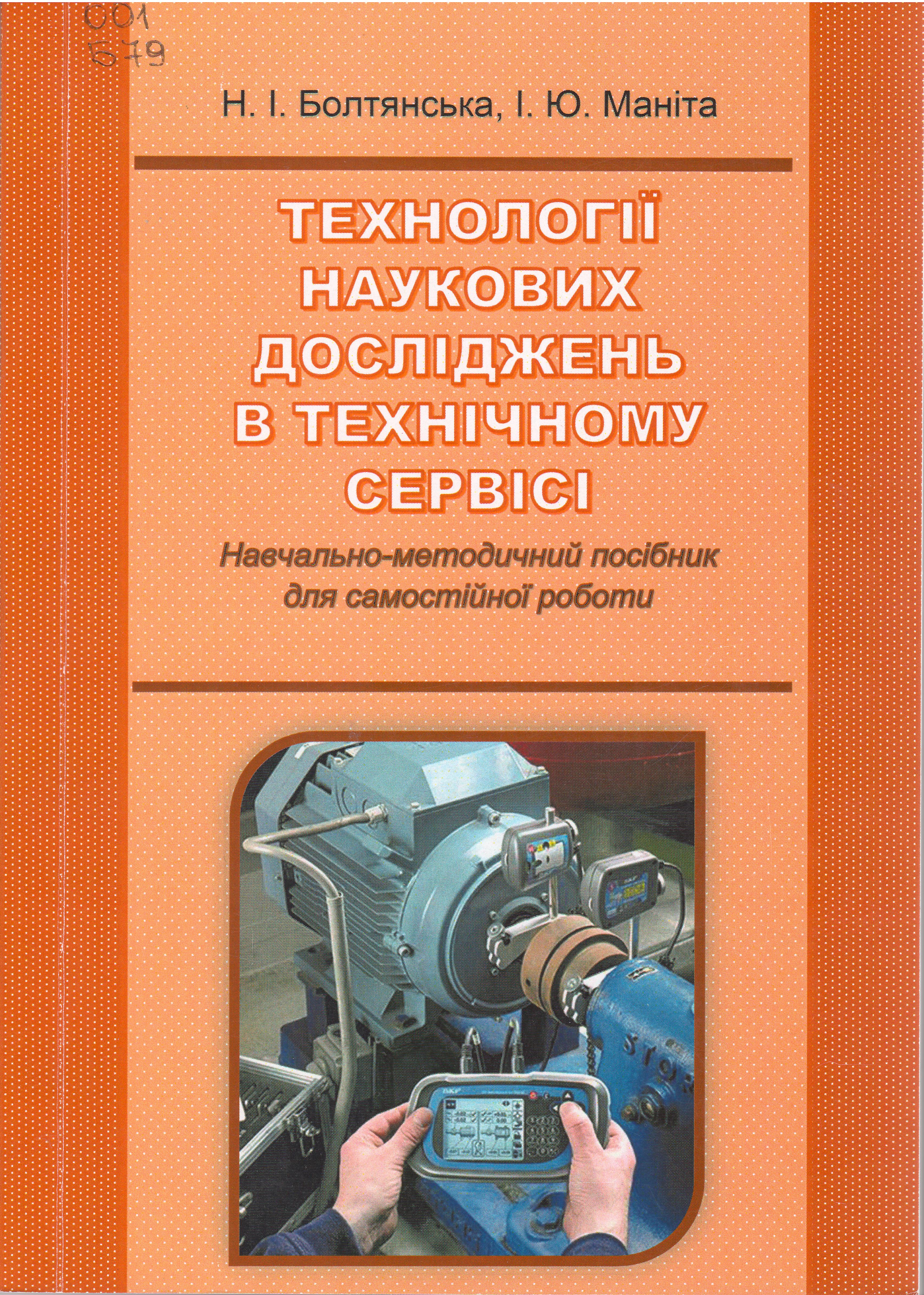 - Болтянська, Н. І. Технології наукових досліджень в технічному сервісі : навч.-метод. посібник для лаборат. робіт / Н. І. Болтянська, І. Ю. Маніта ; ТДАТУ. – Мелітополь, 2020. – 364 с.