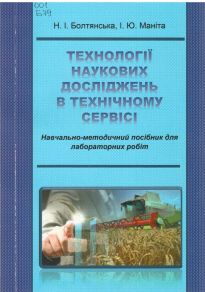 - Болтянська, Н. І. Технології наукових досліджень в технічному сервісі : посібник-практикум / Н. І. Болтянська, І. Ю. Маніта ; ТДАТУ. – Мелітополь, 2020. – 136 с.