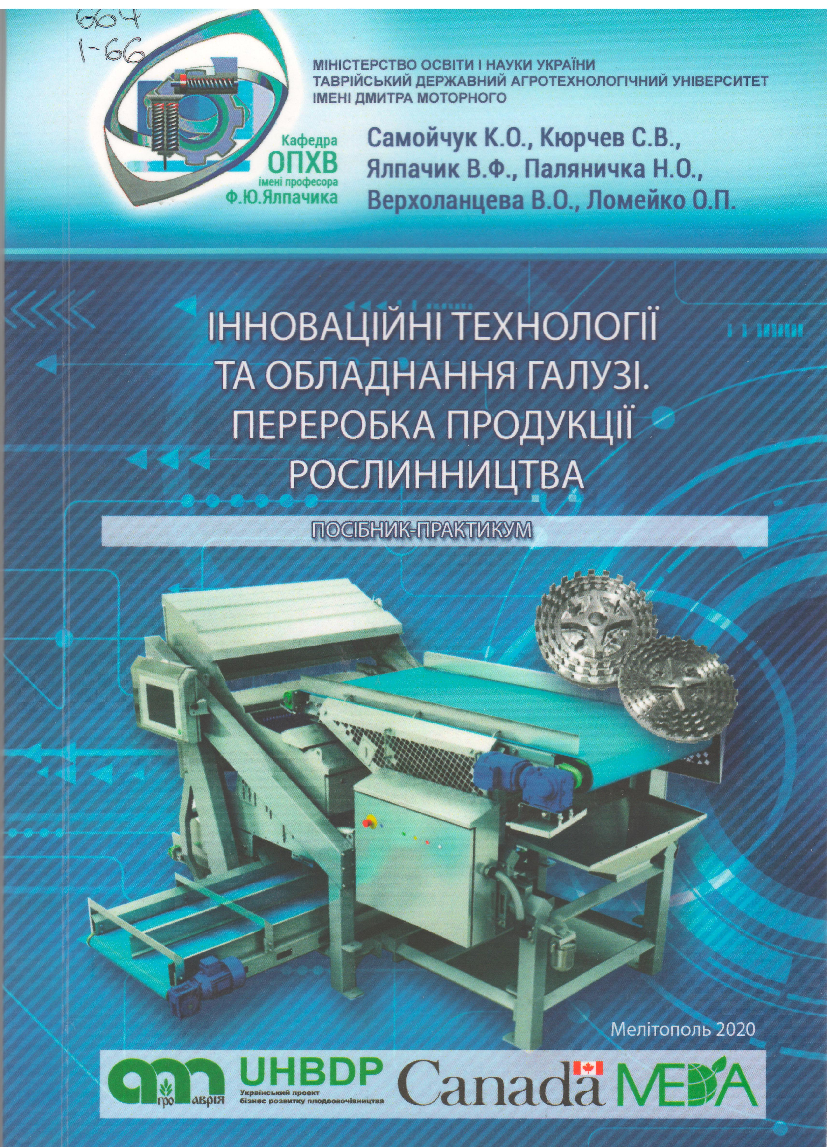 - Інноваційні технології та обладнання галузі. Переробка продукції рослинництва : посібник-практикум / К. О. Самойчук [та ін.] ; ТДАТУ. – Мелітополь, 2020. – 312 с. : рис., табл.