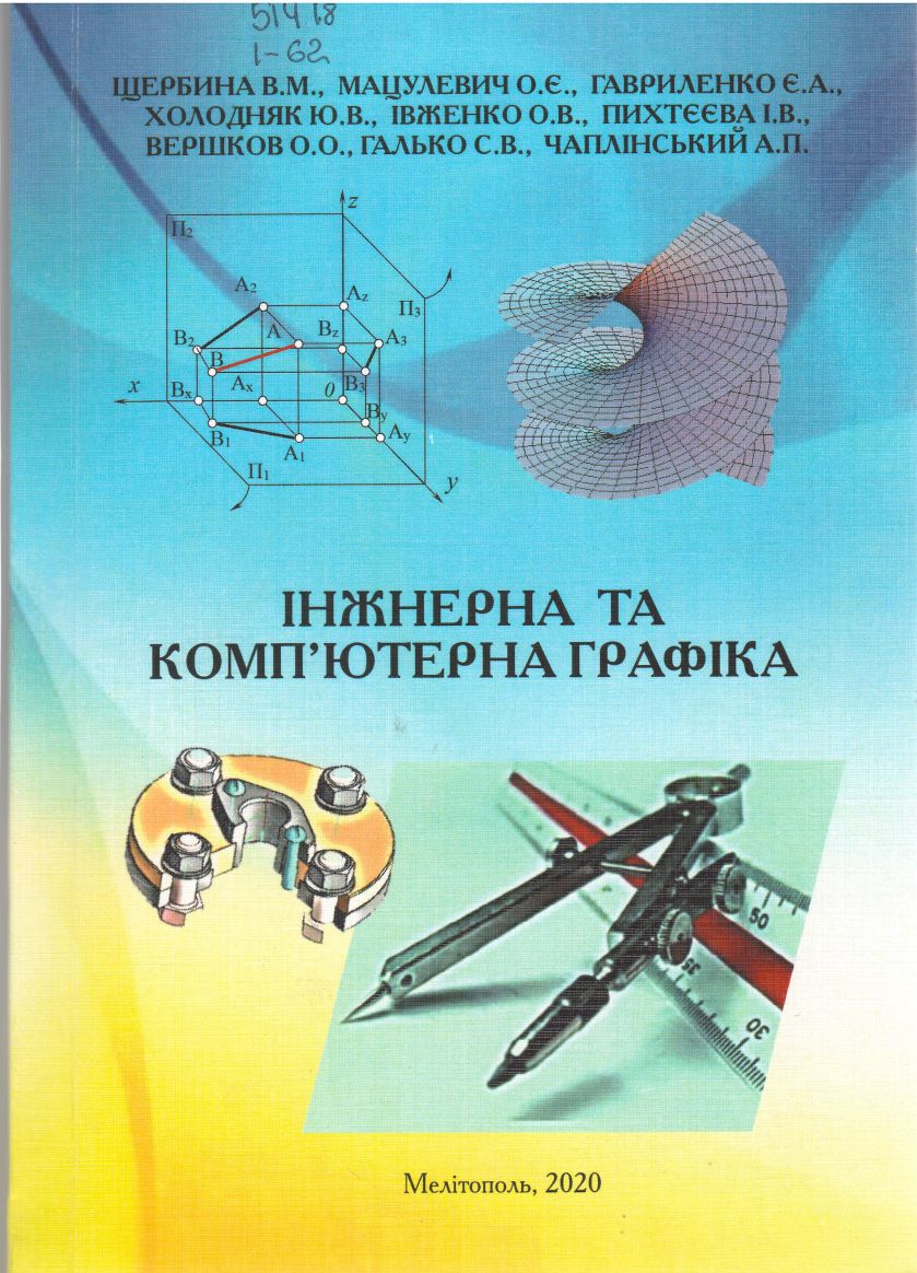 - Інженерна та комп’ютерна графіка : навч. посібник / В. М. Щербина [та ін.] ; ТДАТУ. – Мелітополь, 2020 – .Ч. 1. – 2020. – 238 с. : рис., табл.