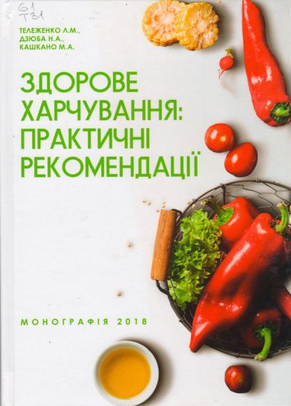 Тележенко, Л. М. Здорове харчування: практичні рекомендації : монографія / Л. М. Тележенко, Н. А. Дзюба, М. А. Кашкано ; Одеська національна академія харчових технологій. – Херсон, 2018. – 200 с. : табл., рис.